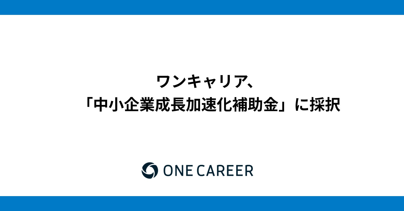 キャリアデータプラットフォーム事業を運営する株式会社ワンキャリア(本社:東京都渋谷区、代表取締役社長 執行役員CEO:宮下 尚之、以下「ワンキャリア」)は、経済産業省・中小企業庁・独立行政法人中小企業基盤整備機構が実施する「中小企業成長加速化補助金」に採択されました。