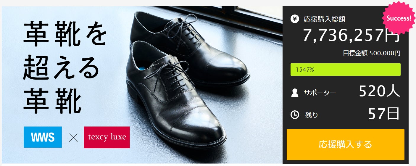 目標金額1500%達成!texcy luxeとコラボ開発した“カカトが踏める”*¹「ボーダレス本革シューズ」が先行販売1週間で早くも増産決定