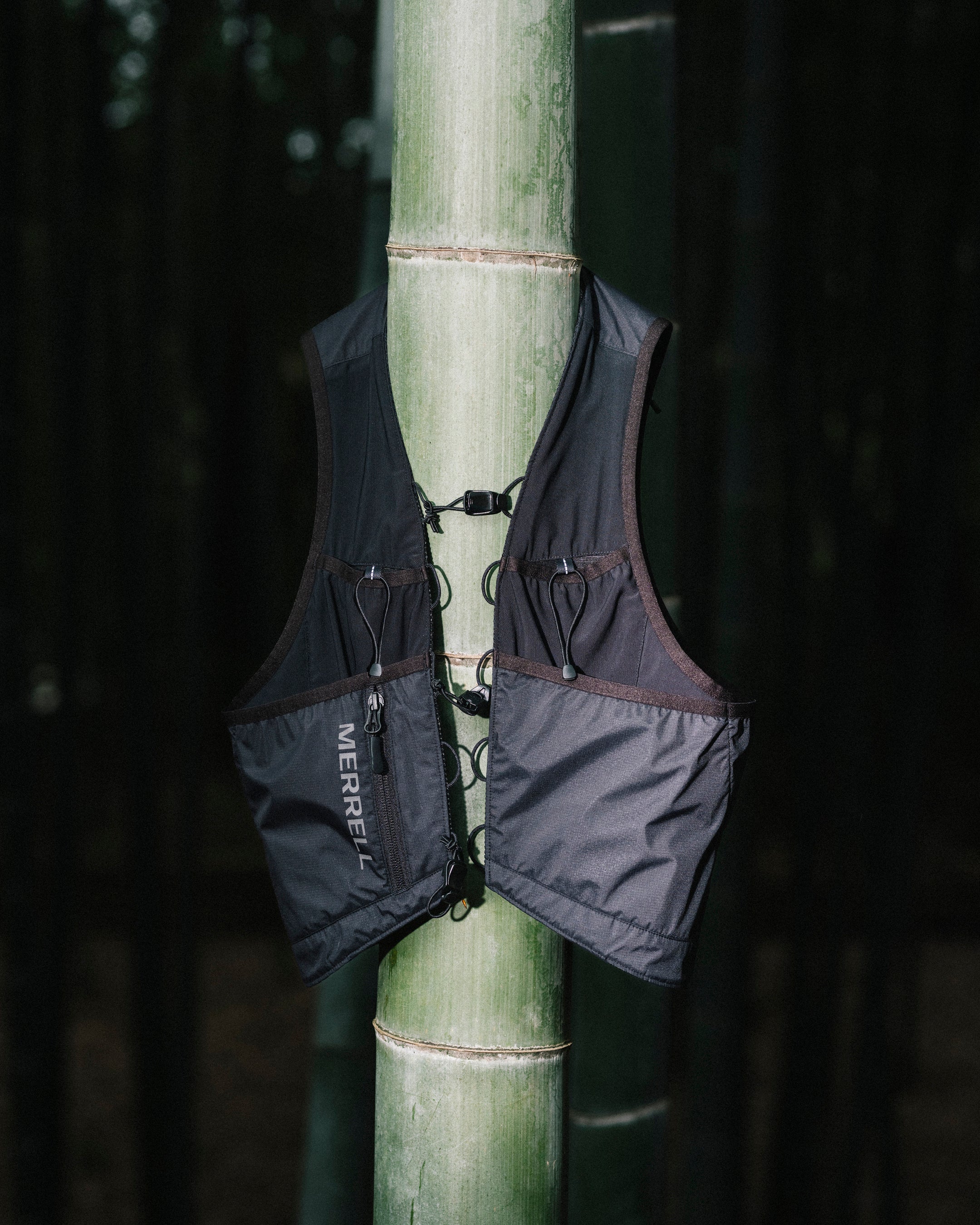 〈MERRELL MOVE IN MODULE〉を構成するのは、可動域を確保しながら防風・撥水性を付加する「LAYERING BORERO」、軽量かつ汎用性に優れ、温度調整の軸となる「LAYERING ZILET」、身体に追従するフィットと収納力を備えた機能拡張型の「LAYERING VEST」、そして動きやすさと環境対応力を兼ね備えた「LAYERING SHORTS」の4型。それぞれが単体でも成立する設計でありながら、組み合わせることで保温・通気・耐候性といった機能が相互に補完され、あらゆるシーンに対応するトータルシステムへと進化します。