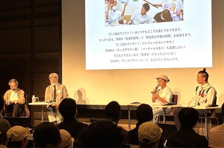 「ここほれワンワン!デザインがザクザク!キッズプロジェクト」は、子どもたち自身が地域の企業や団体に“おじゃま”し、子どもの感覚で「やさしさ」や「わくわく」を見つけ出す体験をデザインした取り組みです。「んまつーポス」と宮崎市産業政策課を含む大人は伴走者として寄り添い、発信の場や社会とのつながりを創出。学びと地域が結びつくことで、子どもの声が地域を動かす実感へとつながりました。