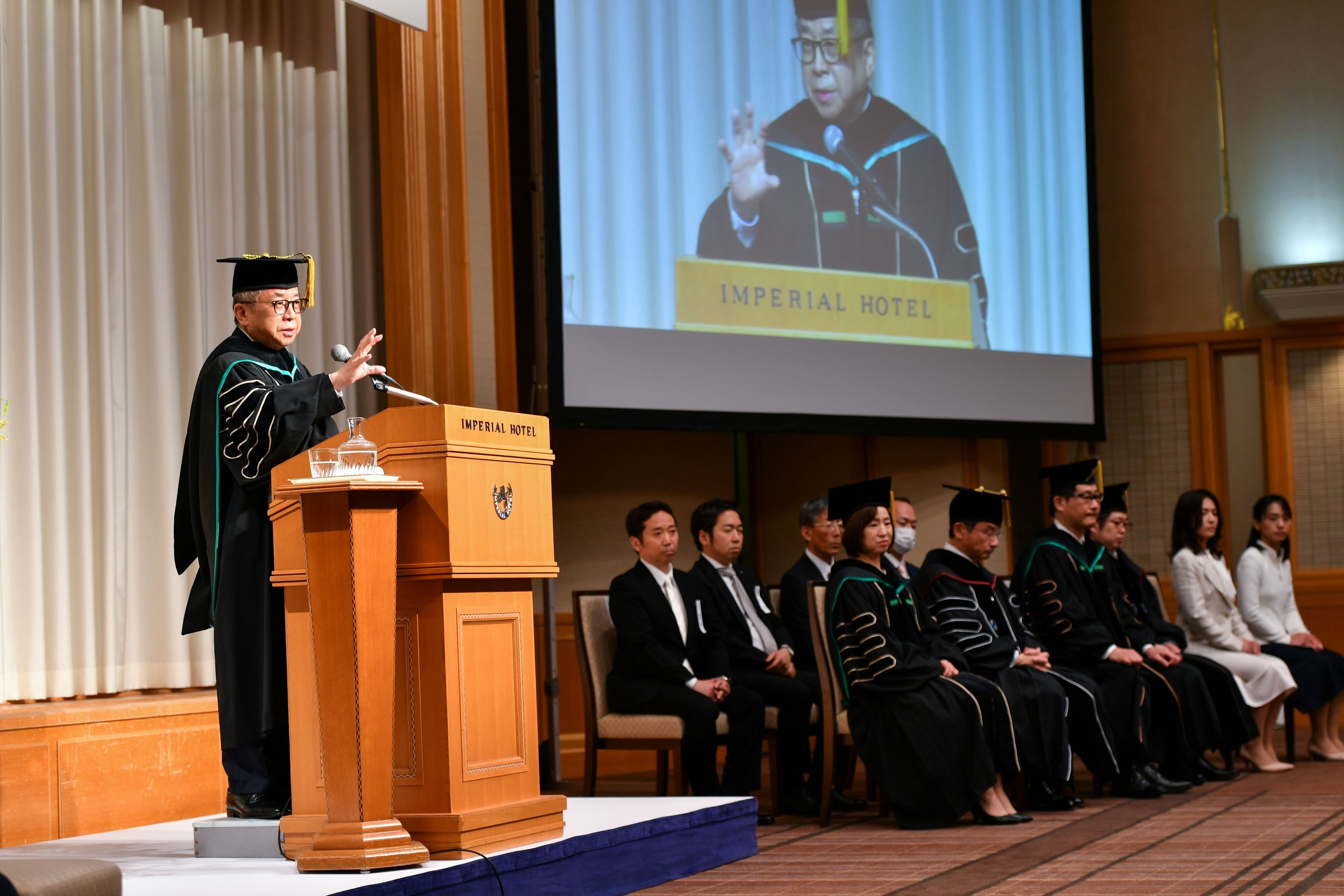 学校法人先端教育機構を代表して東理事長より入学院生に祝辞が贈られました。