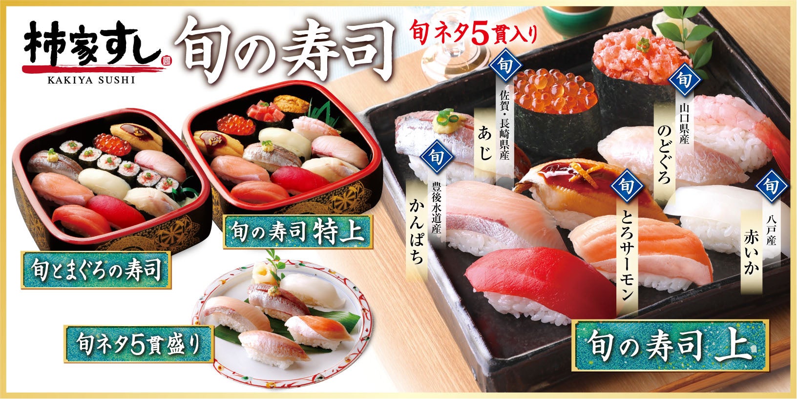 その季節ならではのネタを揃えた「旬の寿司」や、厳選した9種類のネタを贅沢に使用した柿家すし名物「きりこみばら寿司」など、食卓やお集まりの場を華やかに演出しています。