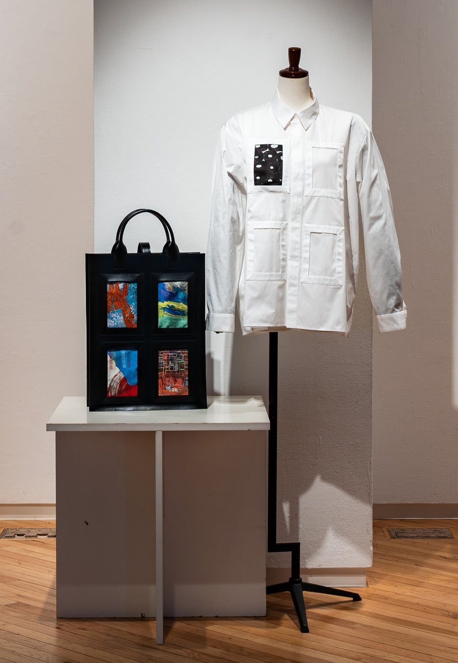 今回登場するのが「SHIRT」と「BAG」。この商品は、シャツとバックに用意された4つの額縁の中に、自分の好きなアートピースをはめて自分だけのオリジナルな装いをお楽しみいただけます。