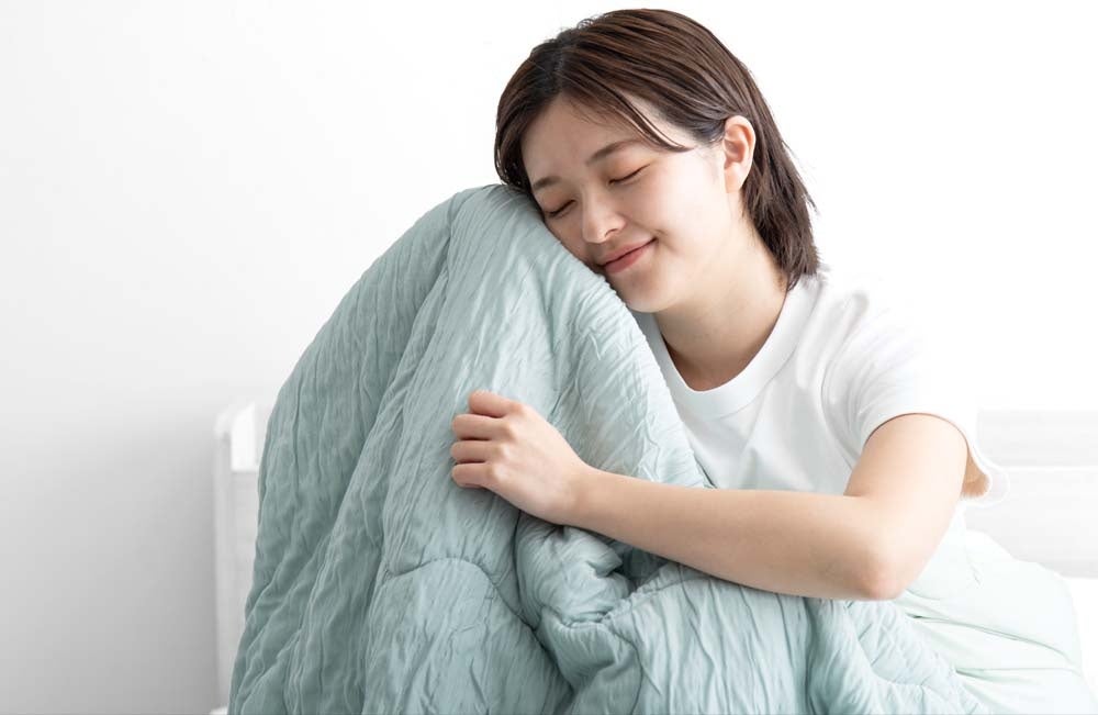 この「エアコンドライ綿」は、ポリエステルの60倍の吸湿性と、綿よりも優れた放湿性を備えています。そのため、寝汗を短時間で吸収・放出し、ひんやりとした寝心地を長時間維持できます。
