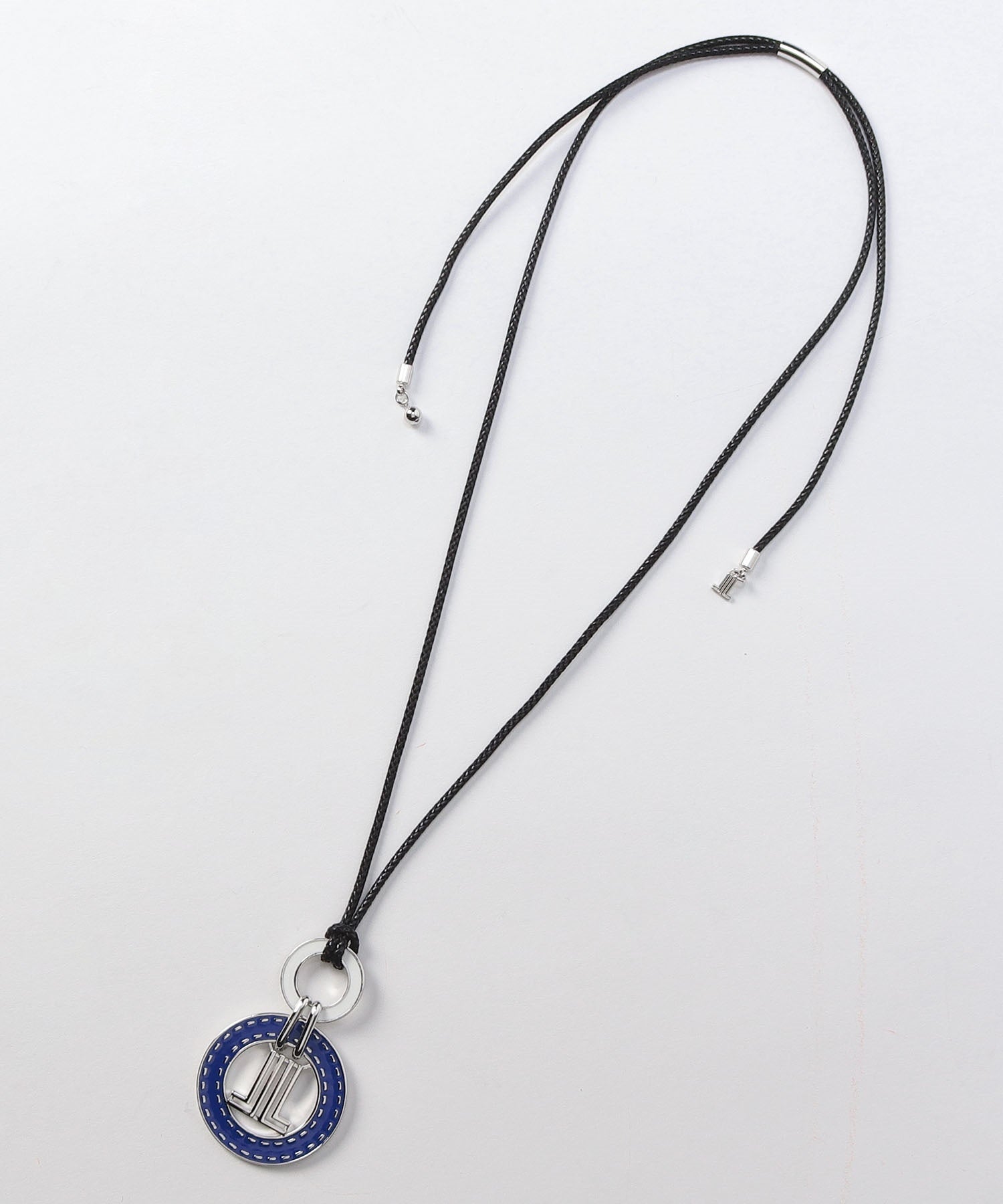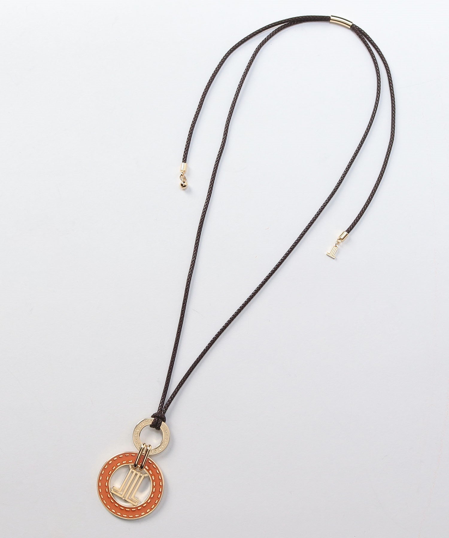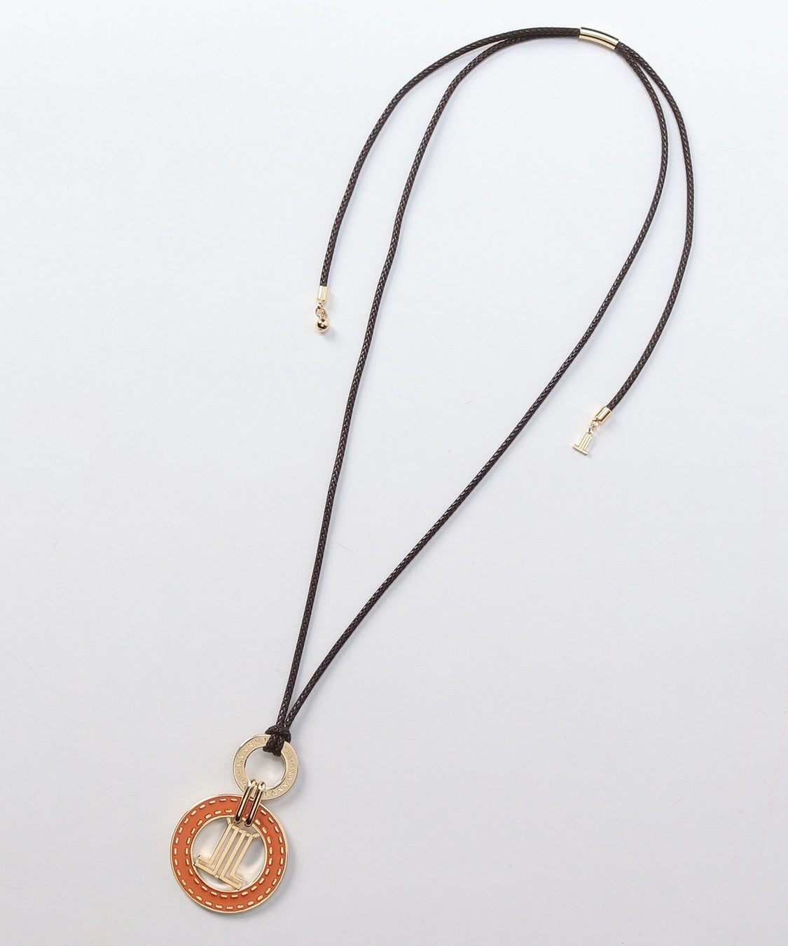 オレンジとブルーのカラーが目を惹くネックレスは、舵や浮き輪がイメージソース。