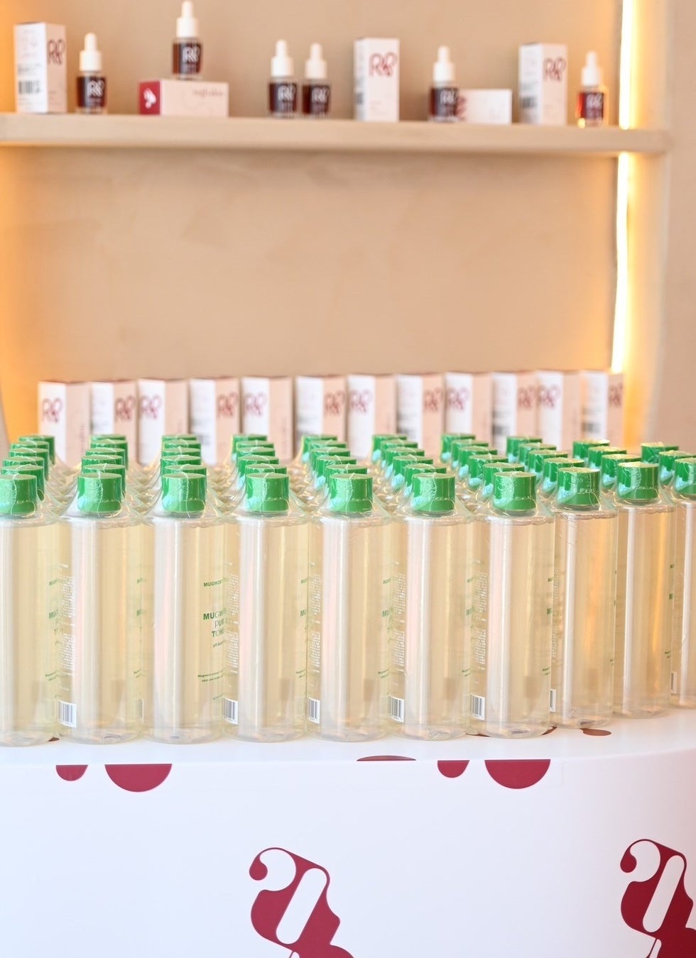 会場では、プールリゾートからインスピレーションを受けた〈mgb skin〉の世界観と、〈énoi〉のニュアンスカラー溢れる開放的な空間がシナジーを生み、訪れる方々を楽しませる期間限定POPUPとなった。5/10(金)にはオープニングレセプションパーティーを行い、約200名の著名人やインフルエンサー、関係者達が訪れ会場に華を添えた。また今回のPOPUP期間中には、連日完売商品が続出する人気ぶりで大盛況のイベントとなった。