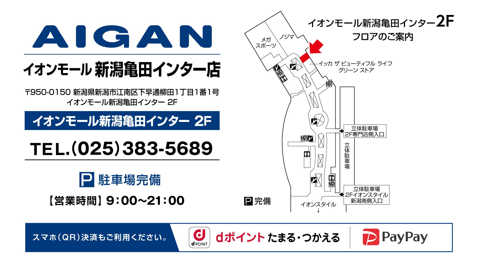 ■店舗情報店舗名 :AIGAN イオンモール新潟亀田インター店