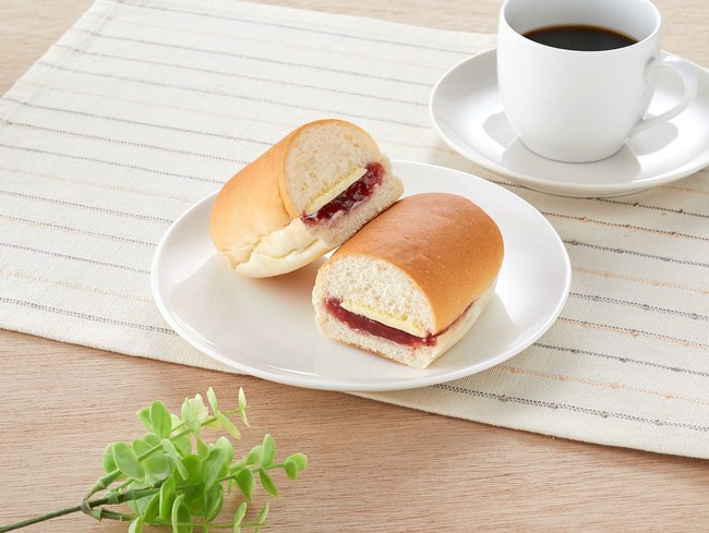 【内容】フルーティなイチゴジャムと口どけのよいマーガリンをサンドしました。牛乳を使用したほんのり甘いコッペパンに、イチゴジャムの酸味がよく合う仕立てです。