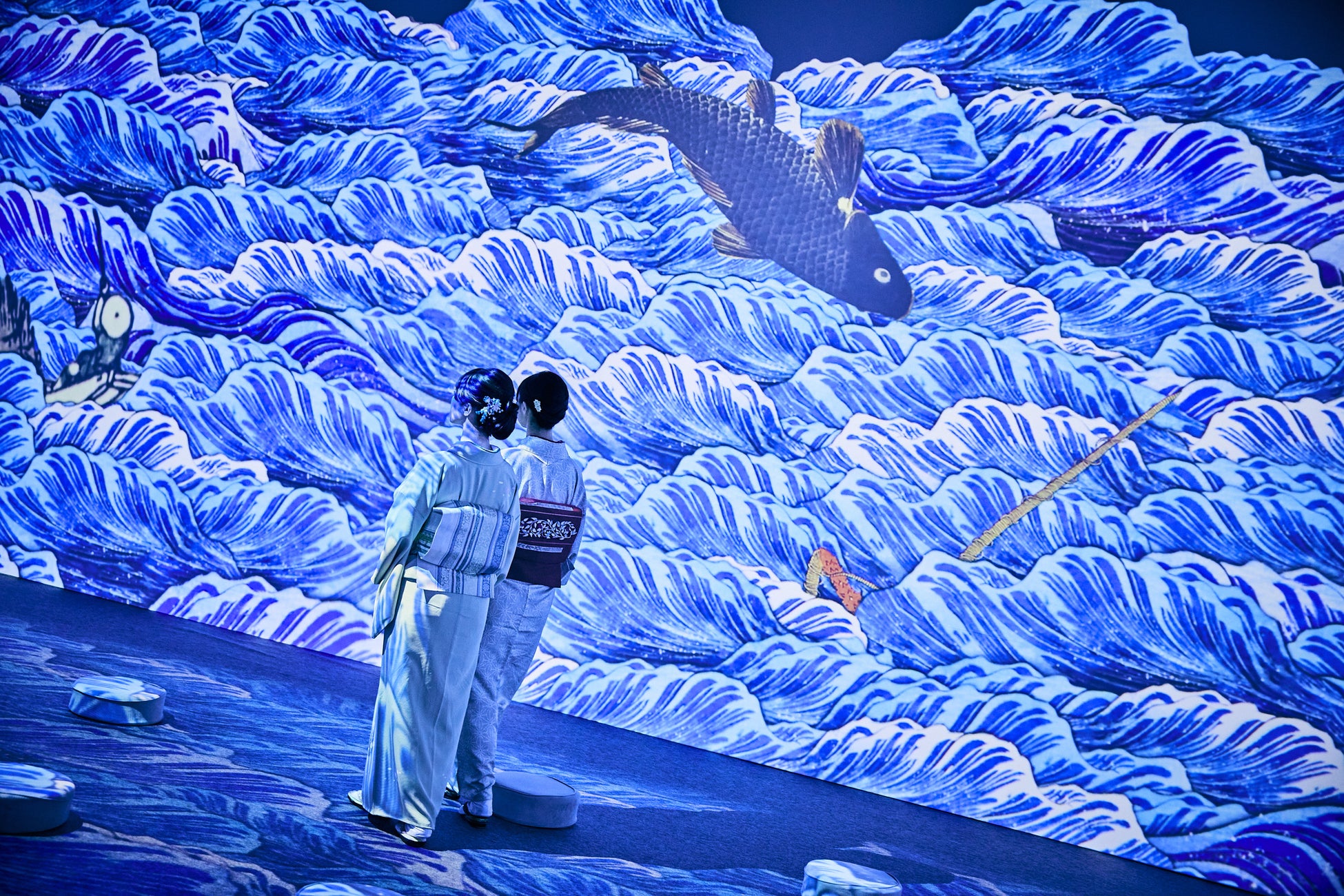「動き出す浮世絵展」は、葛飾北斎、歌川国芳、歌川広重、喜多川歌麿、東洲斎写楽、歌川国貞など世界的な浮世絵師の作品300点以上をもとに、3DCGアニメーションやプロジェクションマッピングを駆使して大人から子どもまで楽しめるグラフィカルなデジタルアート作品として描き、9つの立体映像空間で浮世絵の世界に没入できるイマーシブ体感型デジタルアートミュージアムです。