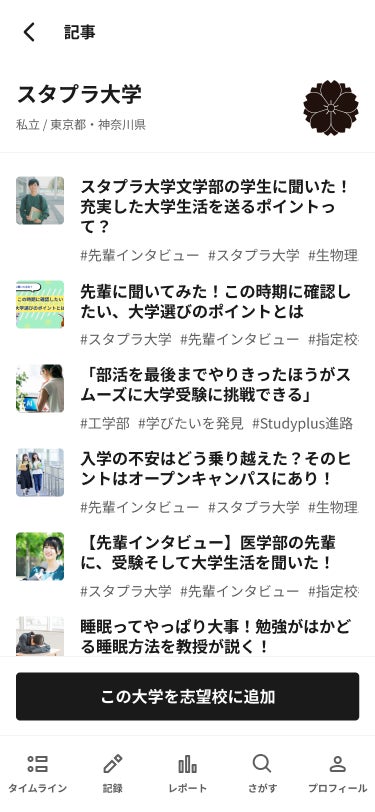 スタディプラス株式会社(本社:東京都千代田区、代表取締役:廣瀬高志、以下スタディプラス)は、大学受験生の2人に1人以上が利用する学習管理アプリ「Studyplus」において、大学選びに悩む受験生をサポートする機能を強化したことをお知らせいたします。