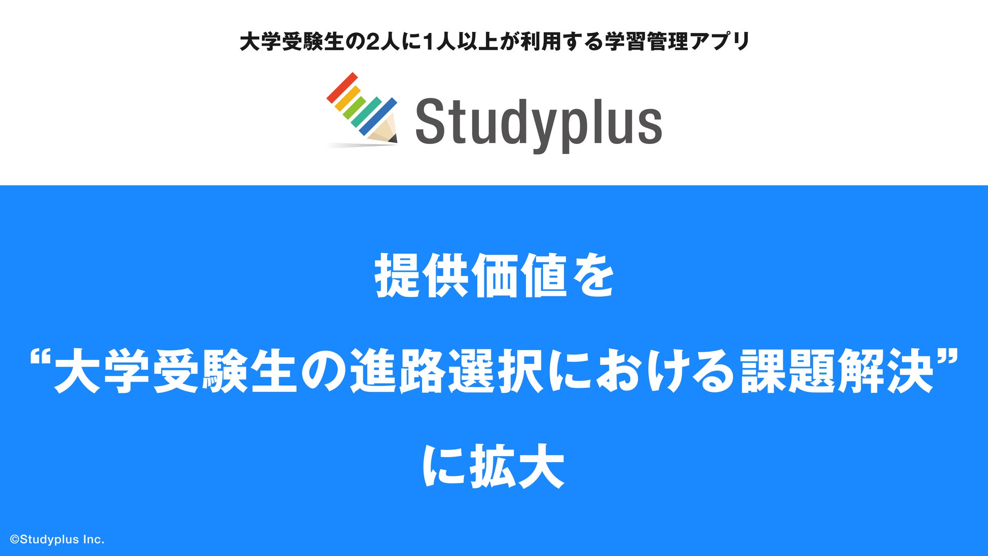 スタディプラスは、多くの大学受験生が多頻度で利用し、自身の志望意欲を管理している「Studyplus」の特長を生かし、進路選択における課題解決に向けた取り組みに今後より注力していきます。