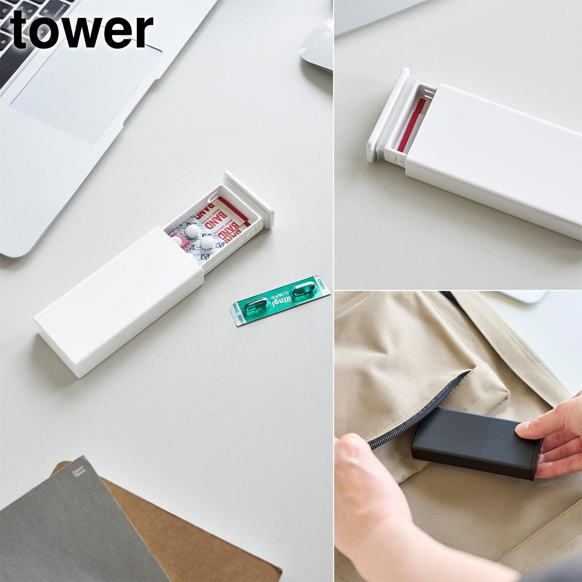 絆創膏や細かなアイテムの収納にも便利で、バッグのポケットにもスッキリ収まります。