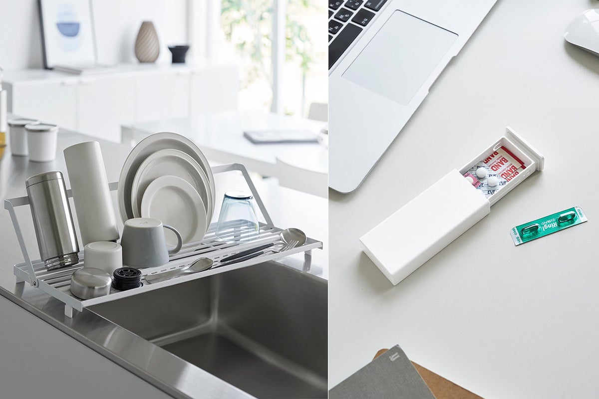 【山崎実業 新商品のお知らせ】 使わない時はスリムに収納できる水切りラックや、スリムな携帯用ピルケースなど、新商品が発売になりました。