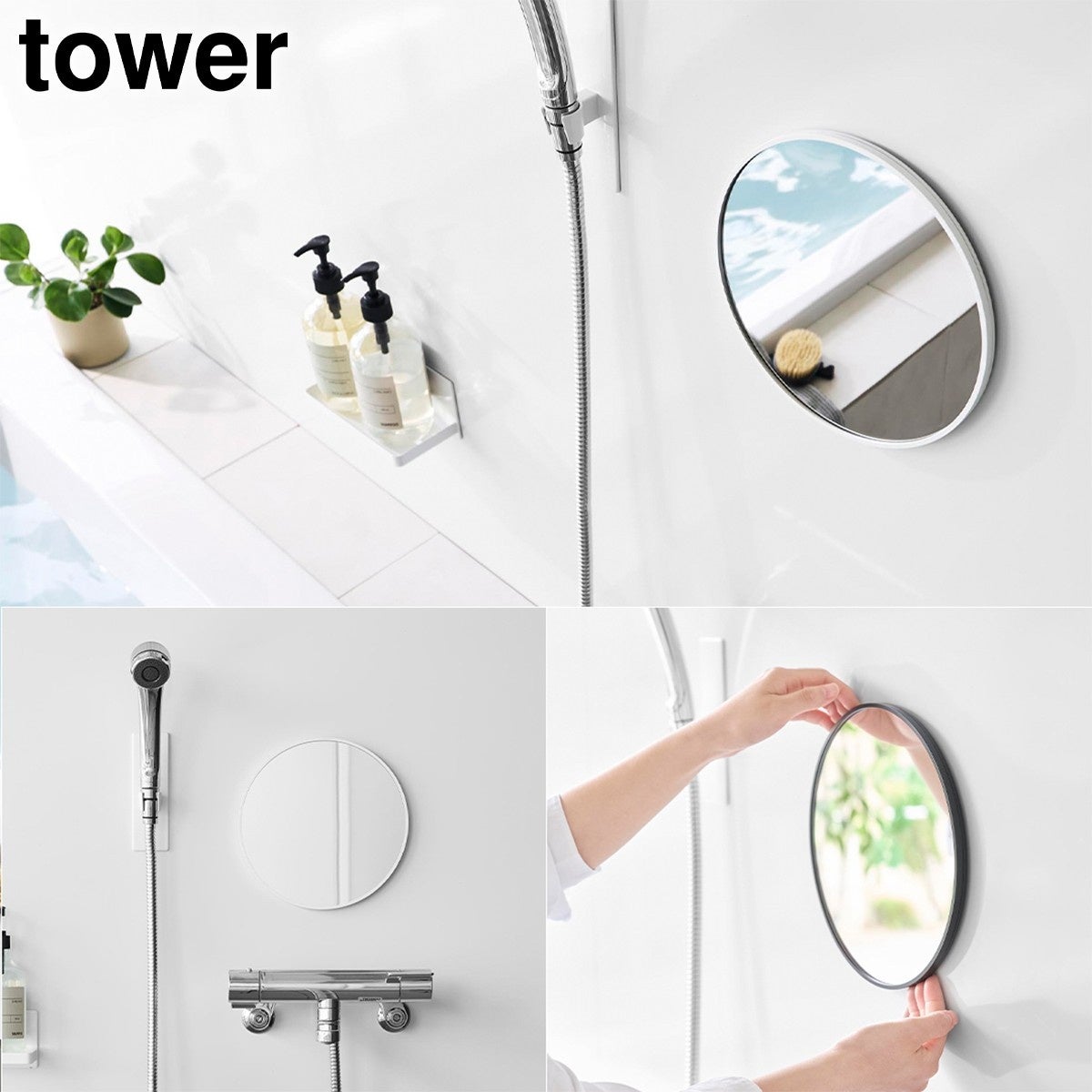手狭なバスルームでもコンパクトに設置できる、直径約23cmのマグネット丸型バスルームミラーです。