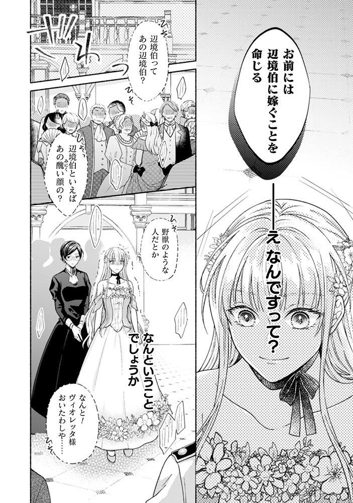 さらに陰で野獣と噂される辺境伯バッセンとの結婚を命じられ、ヴィオレッタは体が震えた―――喜びによって。