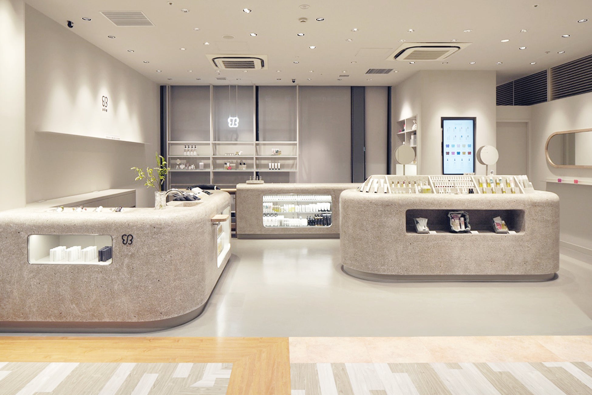 フロントと店内奥に設けられたカウンターでは、販売員であるトータルビューティーコンサルタントによる丁寧なカウンセリングとタッチアップでプロダクトをお選びいただけます。