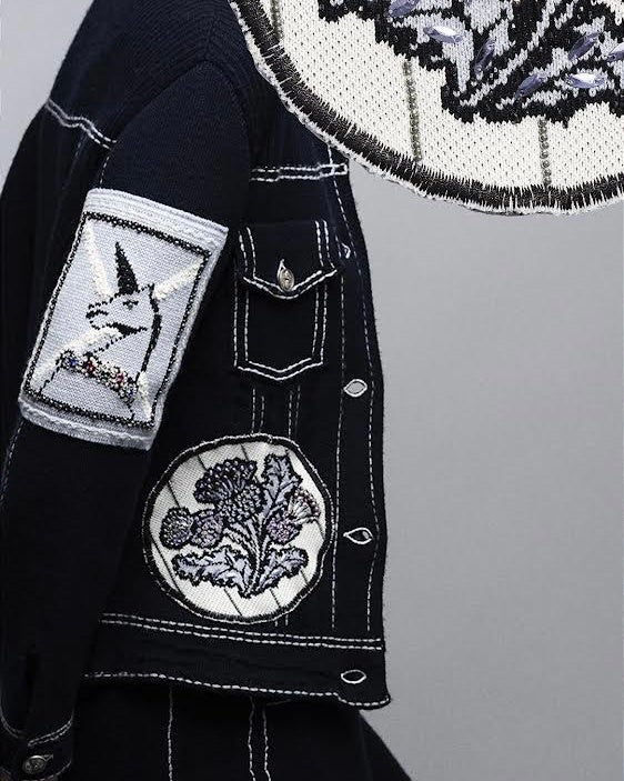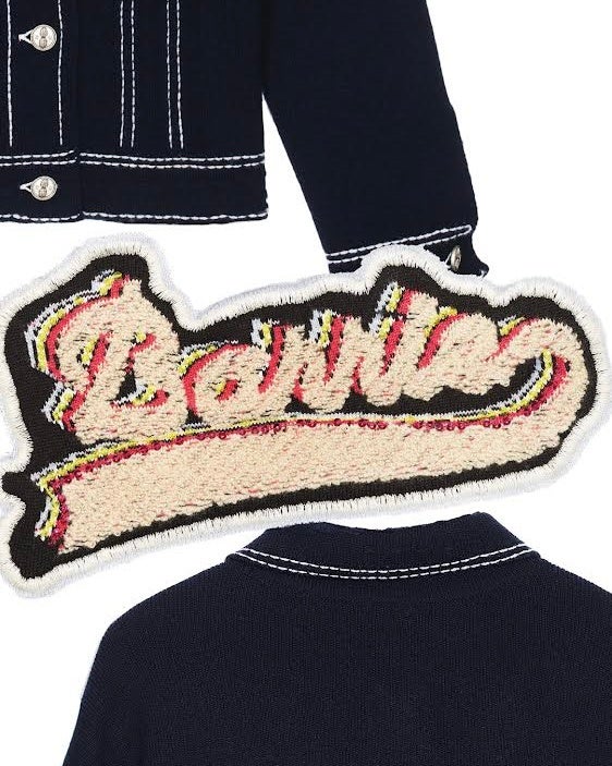 店頭で展開しているワッペンをバリーのカシミヤジャケットにカスタマイズ