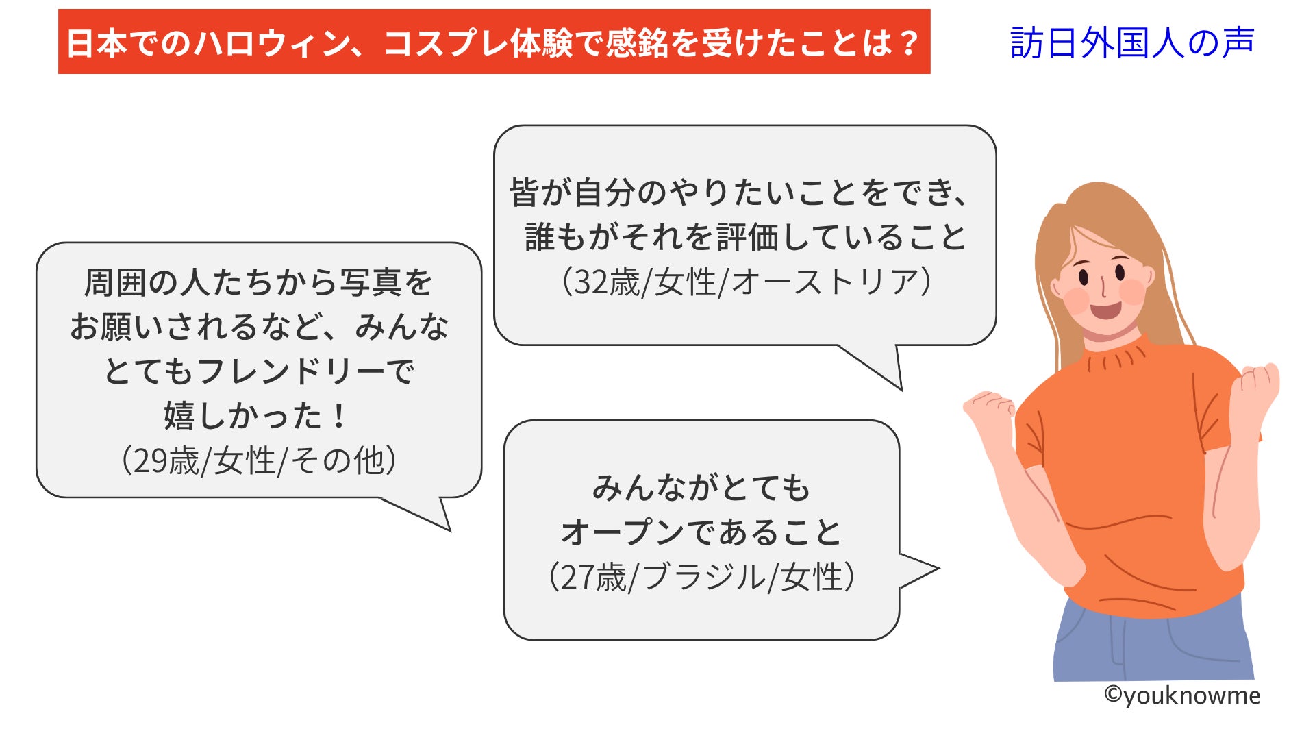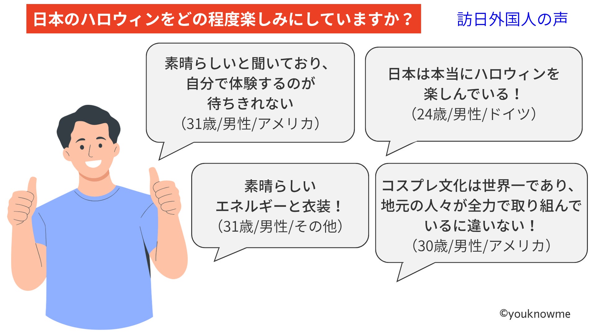 日本のハロウィンに対して、憧れと期待の声が多いこともわかります。