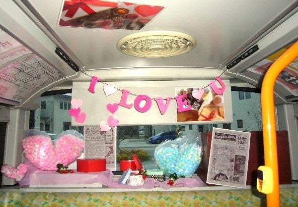 概 要: 車内にバレンタインの気分を盛り上げるために、それをイメージした装飾をしました。車内にはハート形のメッセージカードをご用意。お書きいただいた思いは、車内のハート掲示板を利用して届けることができます。ご利用は自由です。ご活用ください。