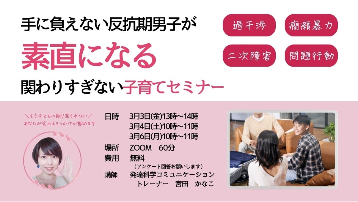 進級進学前に立て直しを「\ 過干渉は卒業できる/ 手に負えない反抗期男子が素直になる関わりすぎない子育て」オンラインセミナー募集開始