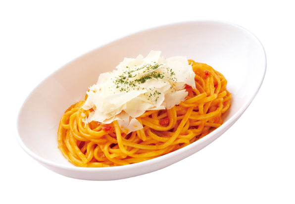 チェダーチーズ、パルメザンチーズ、ペコリーノチーズ、モッツァレラチーズの4種類のチーズと生クリームの濃厚なクリームソース。トッピングにはさらにパルメザンチーズを加え、よりチーズを感じていただけます。麺はソースの絡みがよい、生パスタのペンネを使用しています。