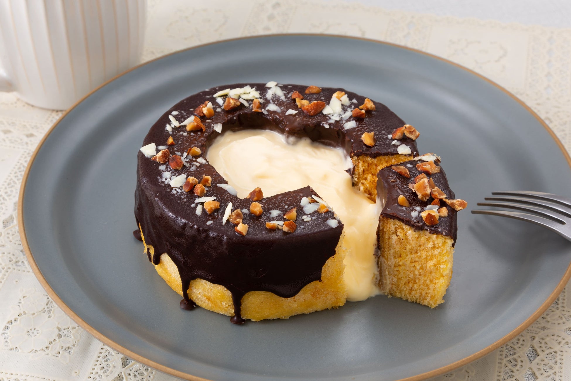 食感にこだわった優しいカスタードの味わいをイメージした、ハート形のバームクーヘンです。ビターチョコレートをコーティングし、アーモンドとホワイトチョコレートをトッピング。中心にはくちどけの良いカスタードクリームを入れました。