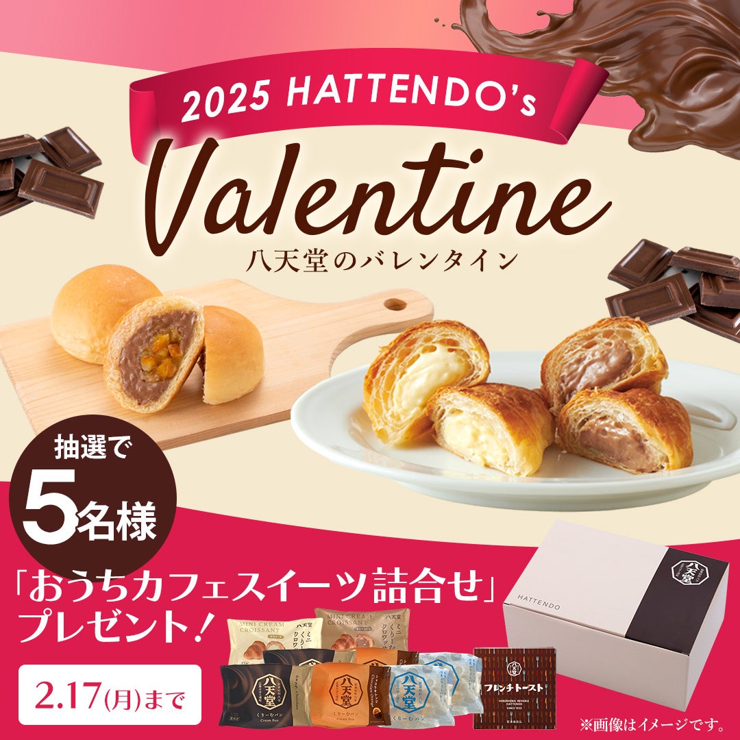 「2025八天堂バレンタイン」にラインアップされているセットをご購入いただいた方から抽選で5名様に「おうちカフェスイーツ詰合せ」をプレゼントします。