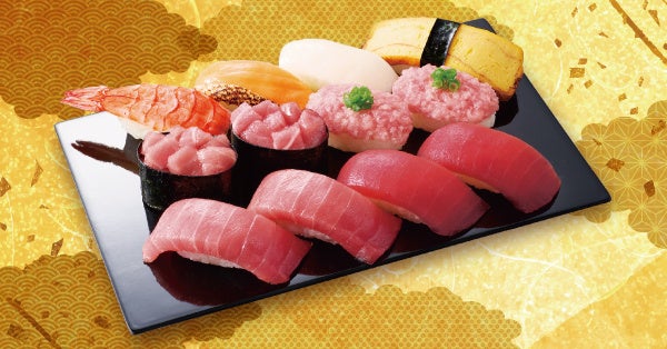 豪華ネタ『本鮪中とろ』、焼サーモンなど人気ネタが入った10貫盛り!