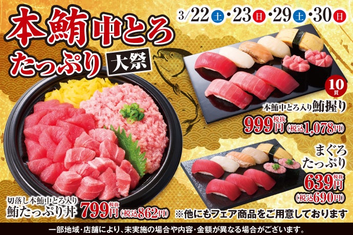 3月22日(土)~『本鮪中とろたっぷり大祭』開催!豪華ネタ【本鮪中とろ】をたっぷり使用した特別なメニューをご用意しました!!