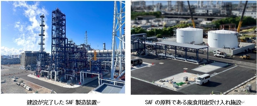日揮HD、レボインターナショナルおよびコスモ石油は、共同でSAF のサプライチェーン構築に向けて事業化検討を進め、2021年にNEDO(国立研究開発法人 新エネルギー・産業技術総合開発機構)の「国産廃食用油を原料とするSAF製造サプライチェーンモデルの構築」助成事業に採択※されました。2022 年 11 月に新会社 SAFFAIRE SKY ENERGY を設立。国内唯一の国産SAF大規模製造設備は 2024年 12 月に完工し、2025年4月から供給を開始しました。
