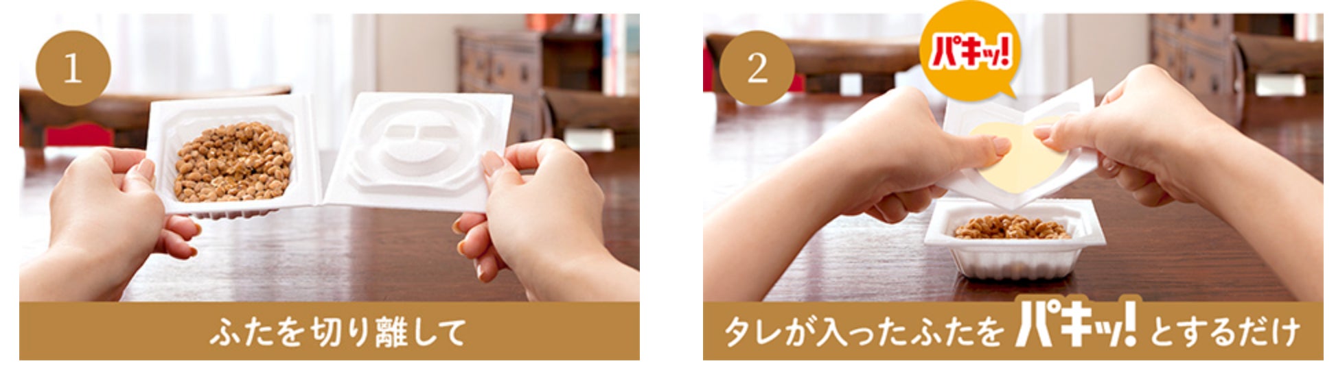 「パキッ!とたれ」は、ふたを切り離し、パキッ!とまん中で折るだけの簡単ステップで、すぐに納豆を召し上がっていただける画期的なたれ容器です。この「パキッ!とたれ」の便利さ、楽しさを採用した「とろっ豆」は、2007年の発売以降、小さいお子様から高齢者の方まで多くのお客様にご好評をいただいております。