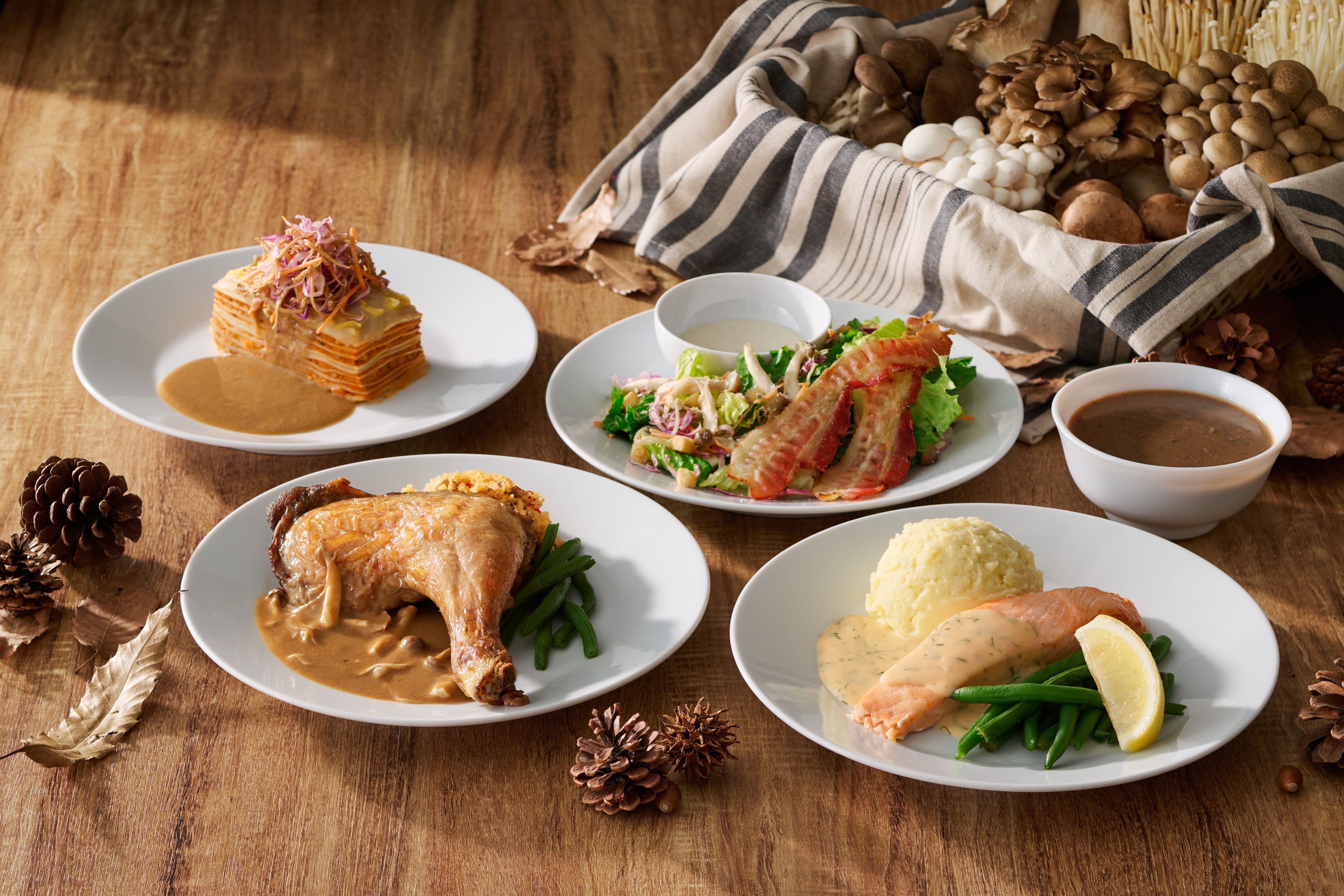また、秋の味覚の代表きのこを使った濃厚なきのこのソースをたっぷりかけたチキンコンフィや、ボリュームたっぷりのプラントべースラザニアにきのこソースをかけたこの季節だけの限定のメニューを提供します。食欲の秋を、ぜひイケアレストランでご堪能ください。
