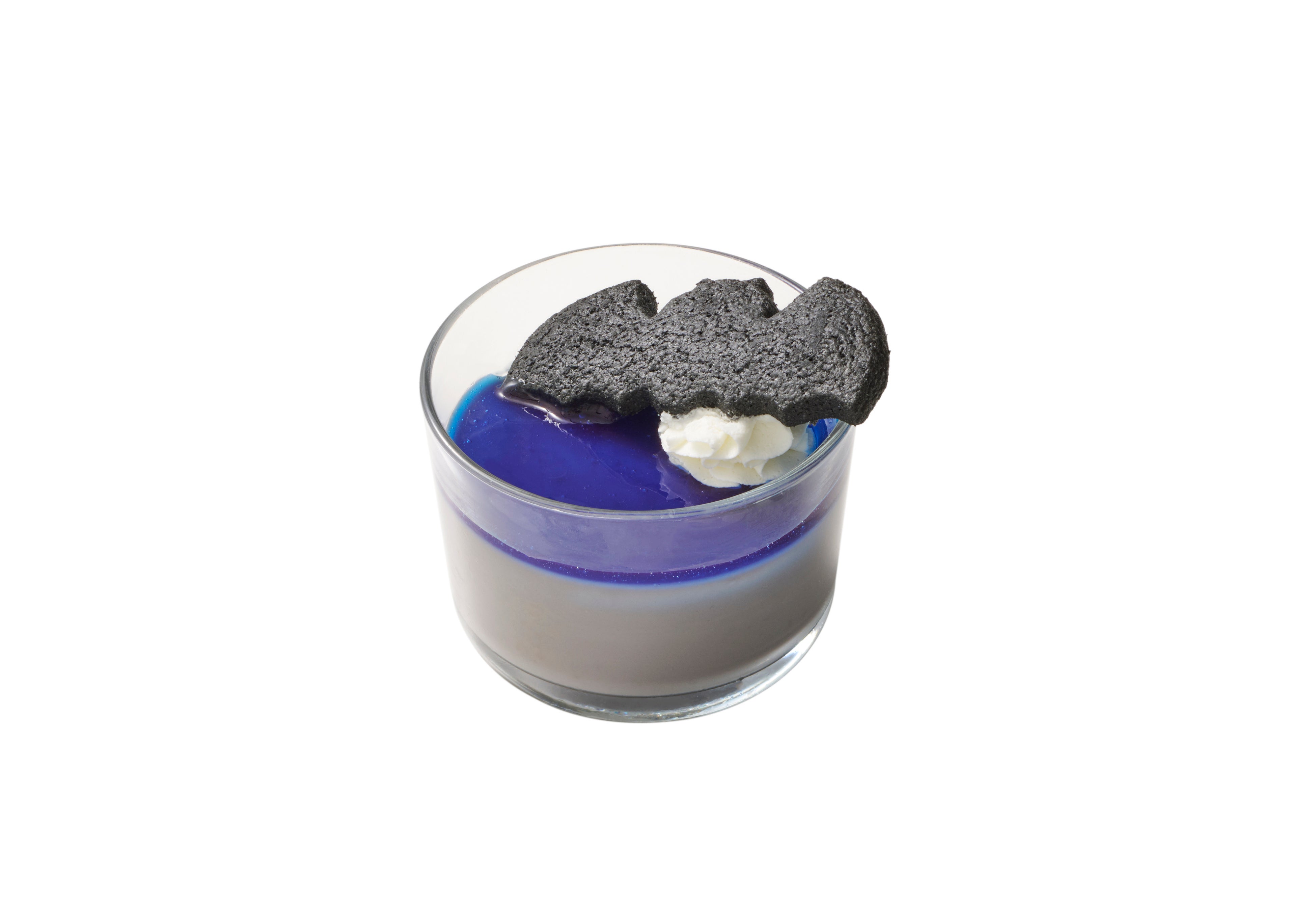 暗闇の中に佇むコウモリに見立てた深いブルーが目を引く一品。ほんのり甘みを感じるさつまいもプリン。