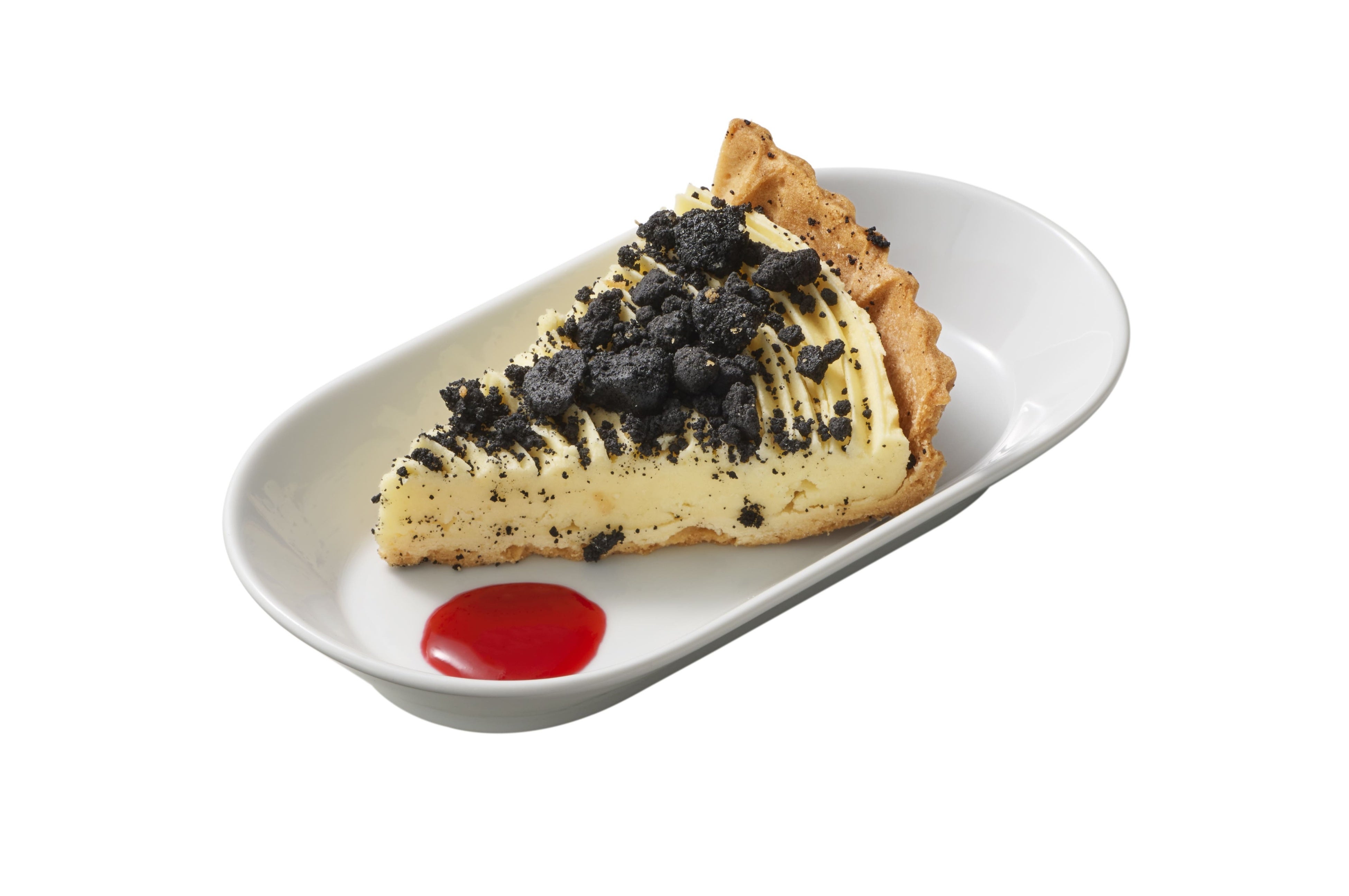口どけなめらかなさつまいもクリームがたっぷりつまったタルトに、ザクザク食感のクランブルをトッピング。お好みで、酸味のあるラズベリーソースをつけて召し上がれ。