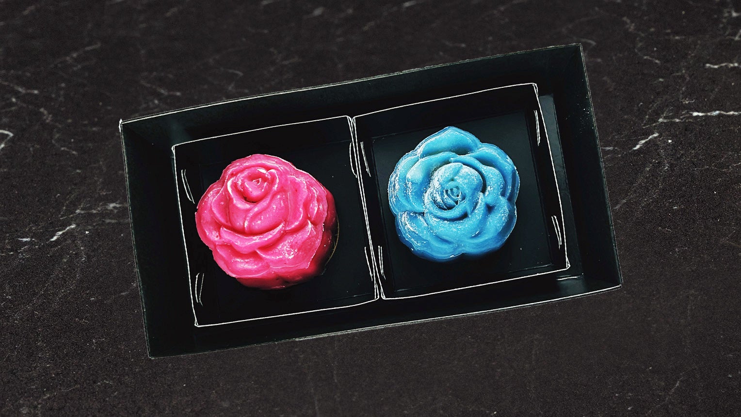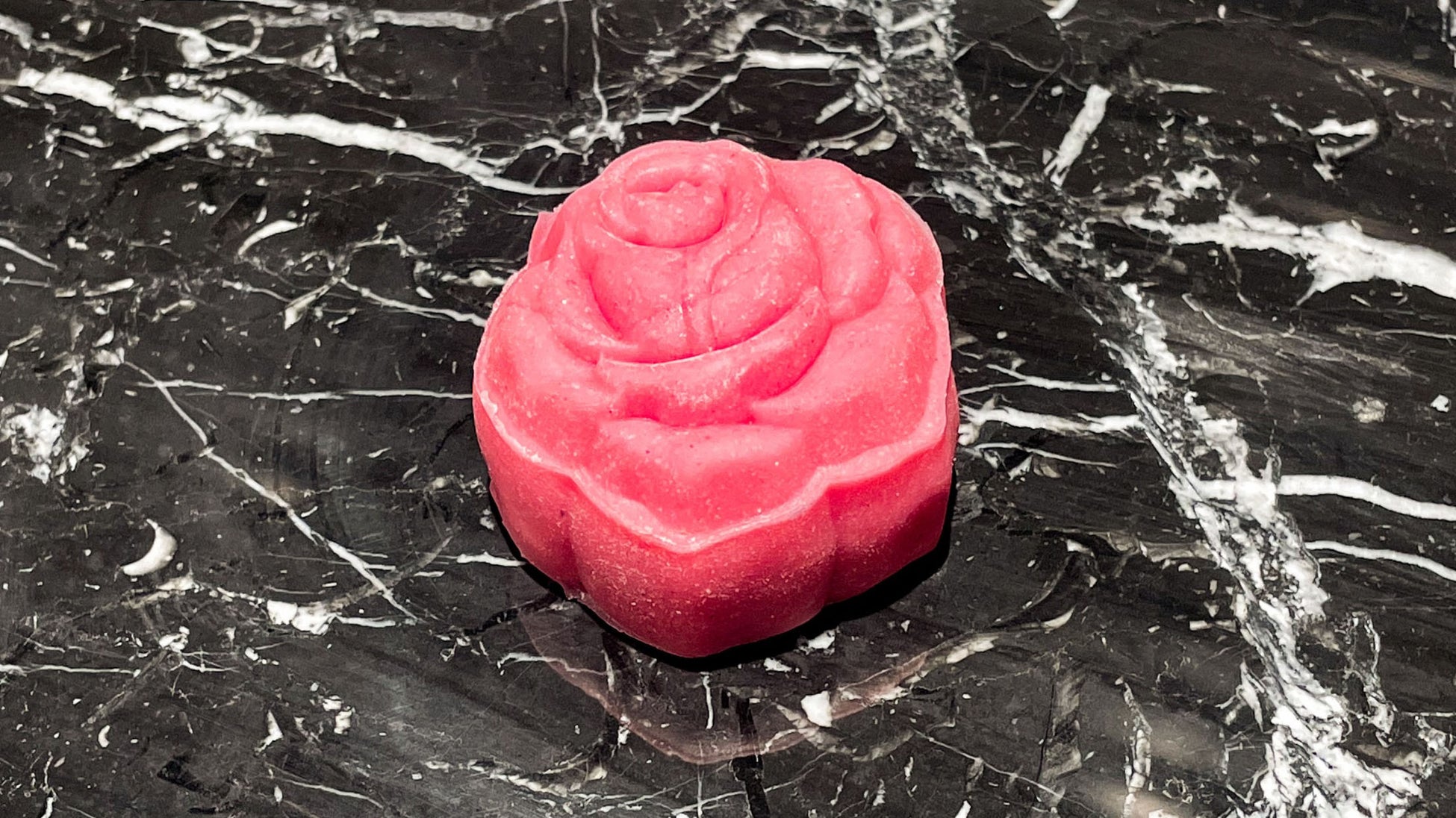 柔らかな求肥を、薔薇の花びらを練り込んだ華やかな香りの薔薇あんで包みました。