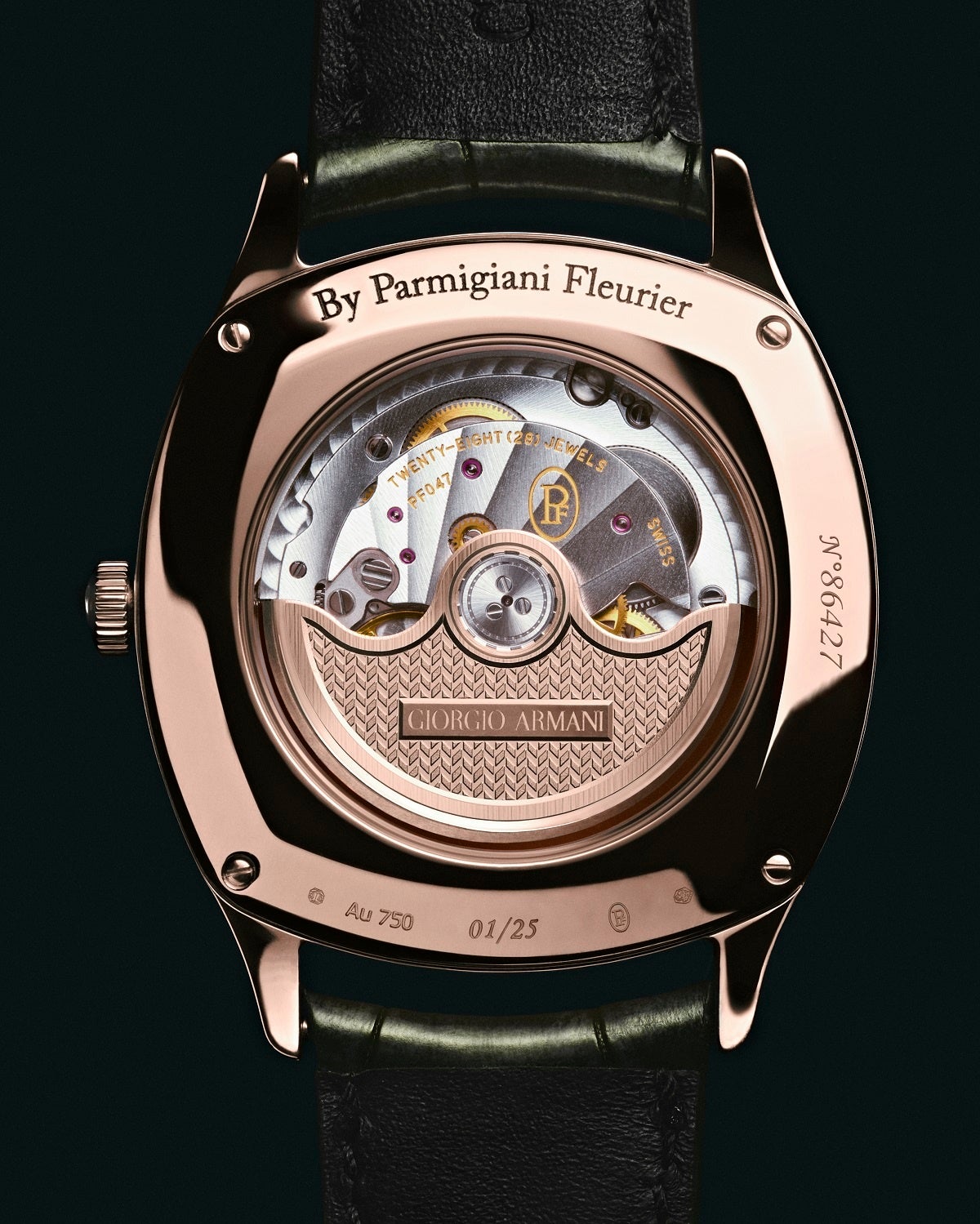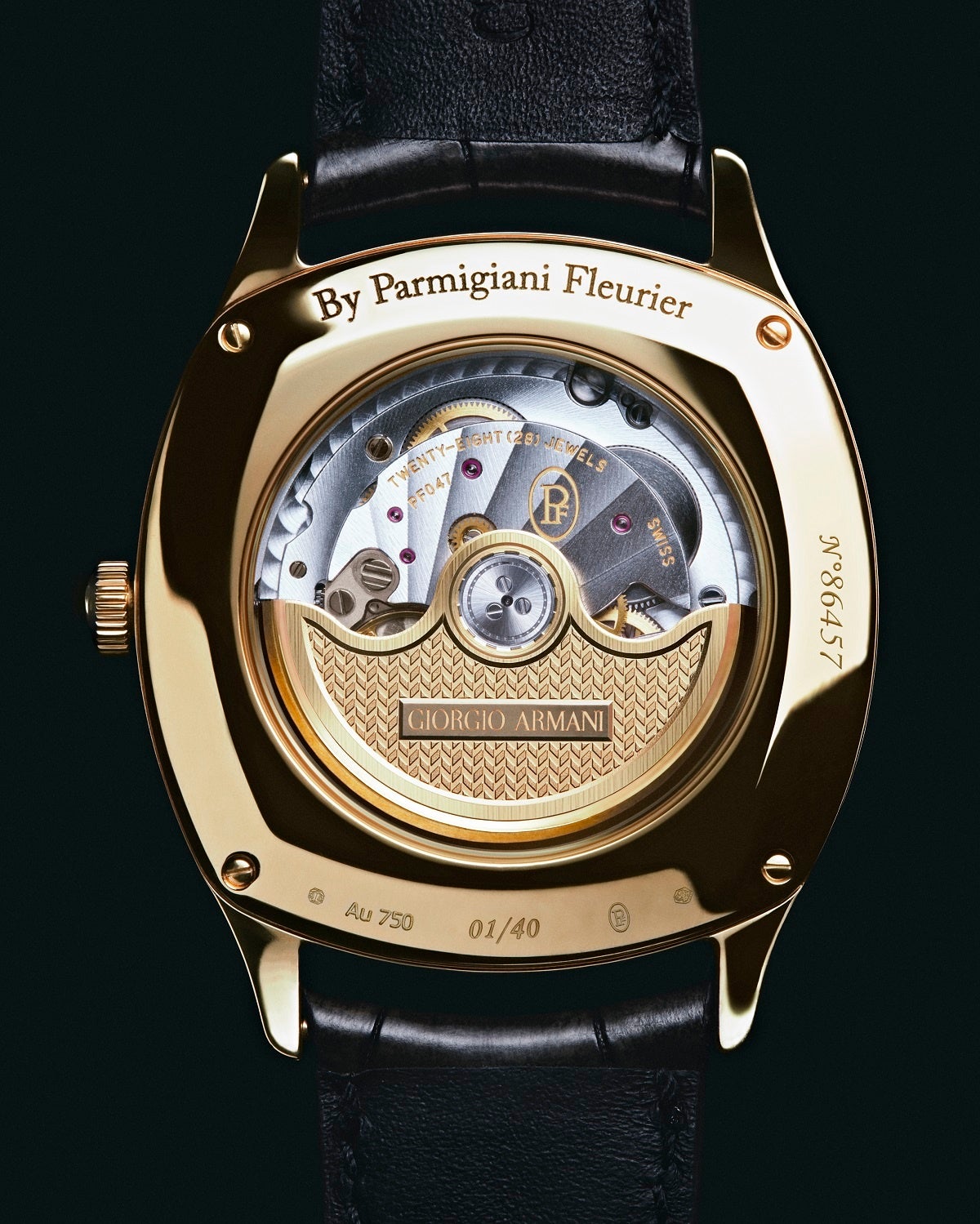 スイスの高級時計メーカー、パルミジャーニ・フルリエとのコラボレーションにより誕生した、エレガントなジョルジオ アルマーニの新しいコレクションは、すべてハンドメイドで製造され、シリアルナンバーが刻印されています。