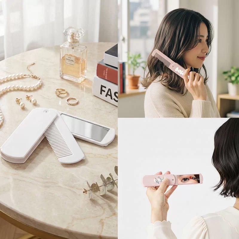 外出先での髪のお直しやメイク直しに便利な折りたたみ仕様で、日常使いしやすい実用性の高いオリジナルアイテムです。