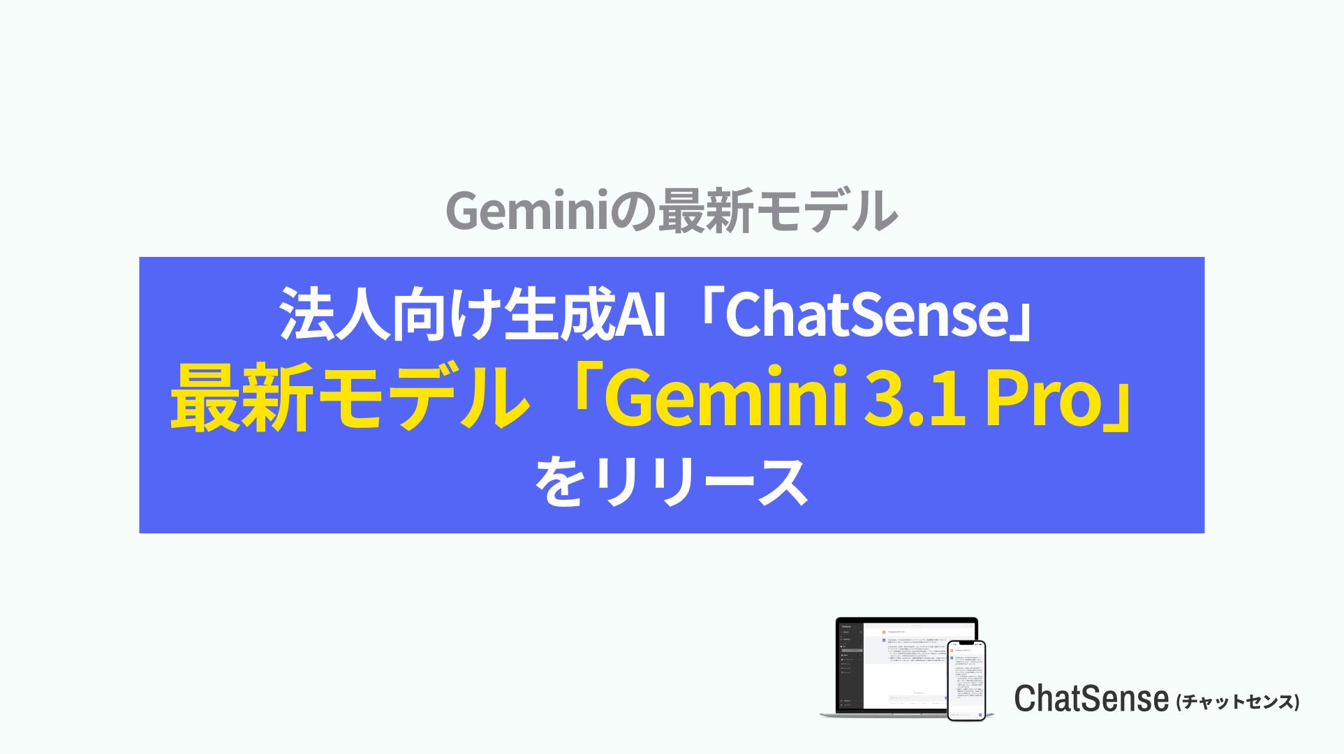先日、米Google社より、OpenAIを含む全ての現行モデルの中で最高性能のAIモデル「Gemini 3.1 Pro」がリリースされました。ChatSenseでは日頃より、企業が生成AIを、セキュリティ高く活用するための取り組みをサポートしております。