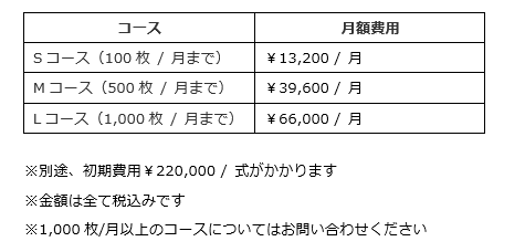 課金の単位は月間の読取枚数(ページ数)です。読み取り項目数は無制限ですので、項目の多い帳票の読み取りも、13,200円/月(月 100枚まで)からご利用いただけます。