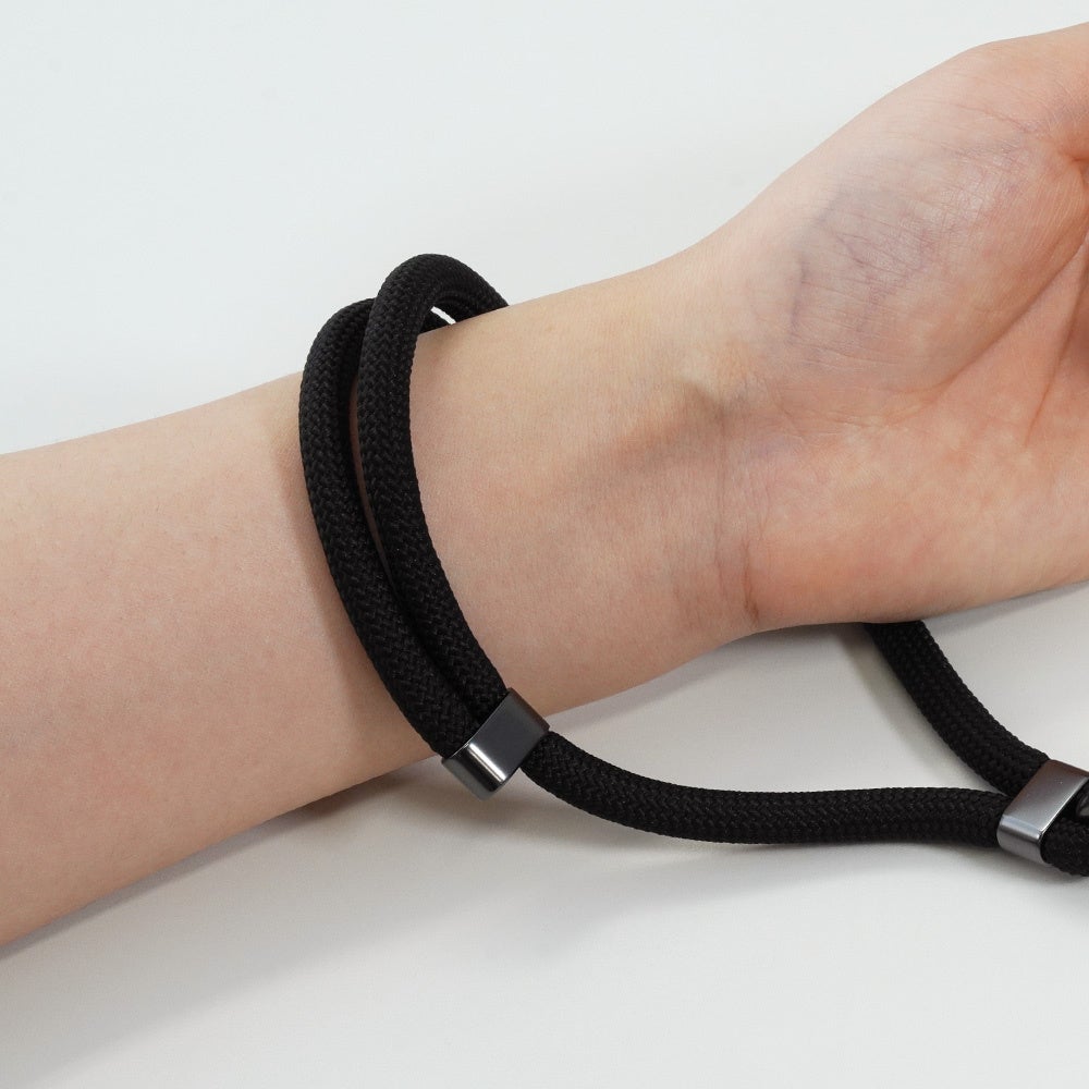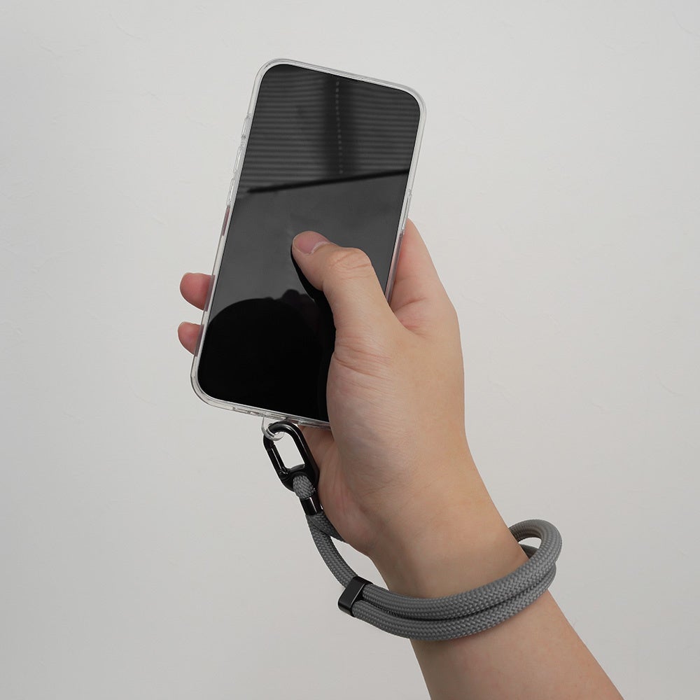 手首に通して使用することで、スマートフォン操作時やハンディファン使用時の落下リスクを軽減。