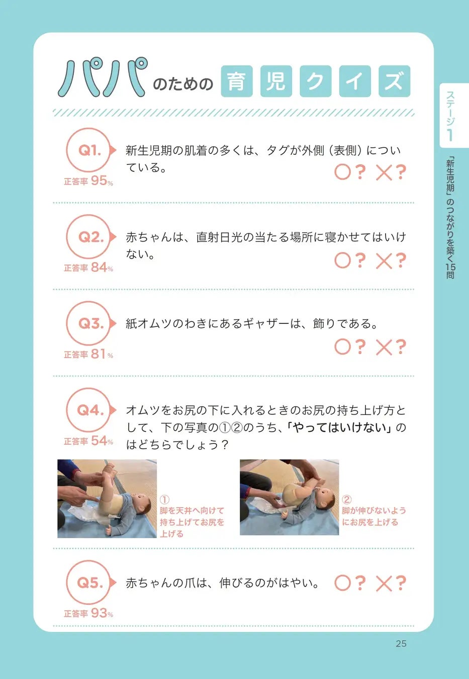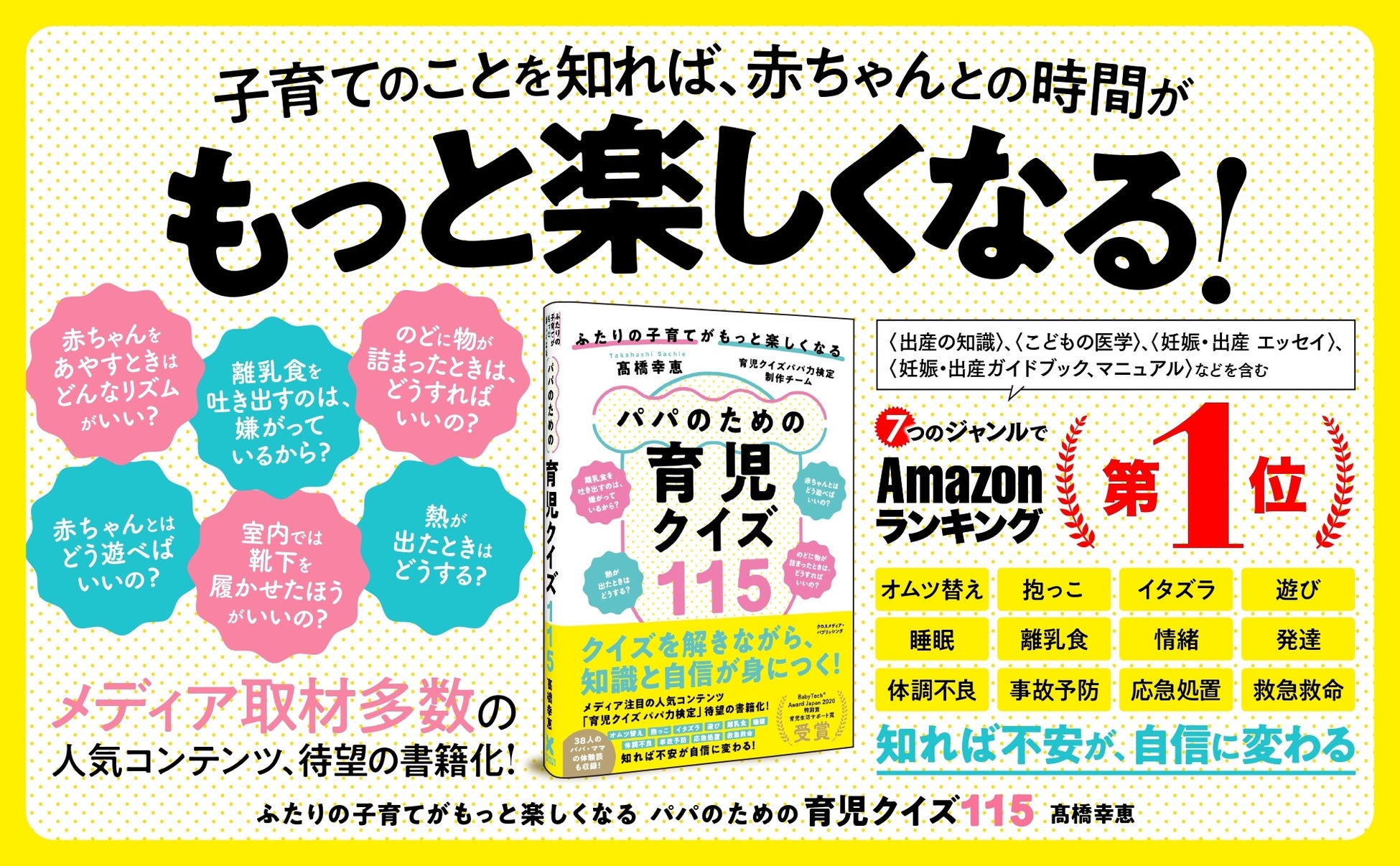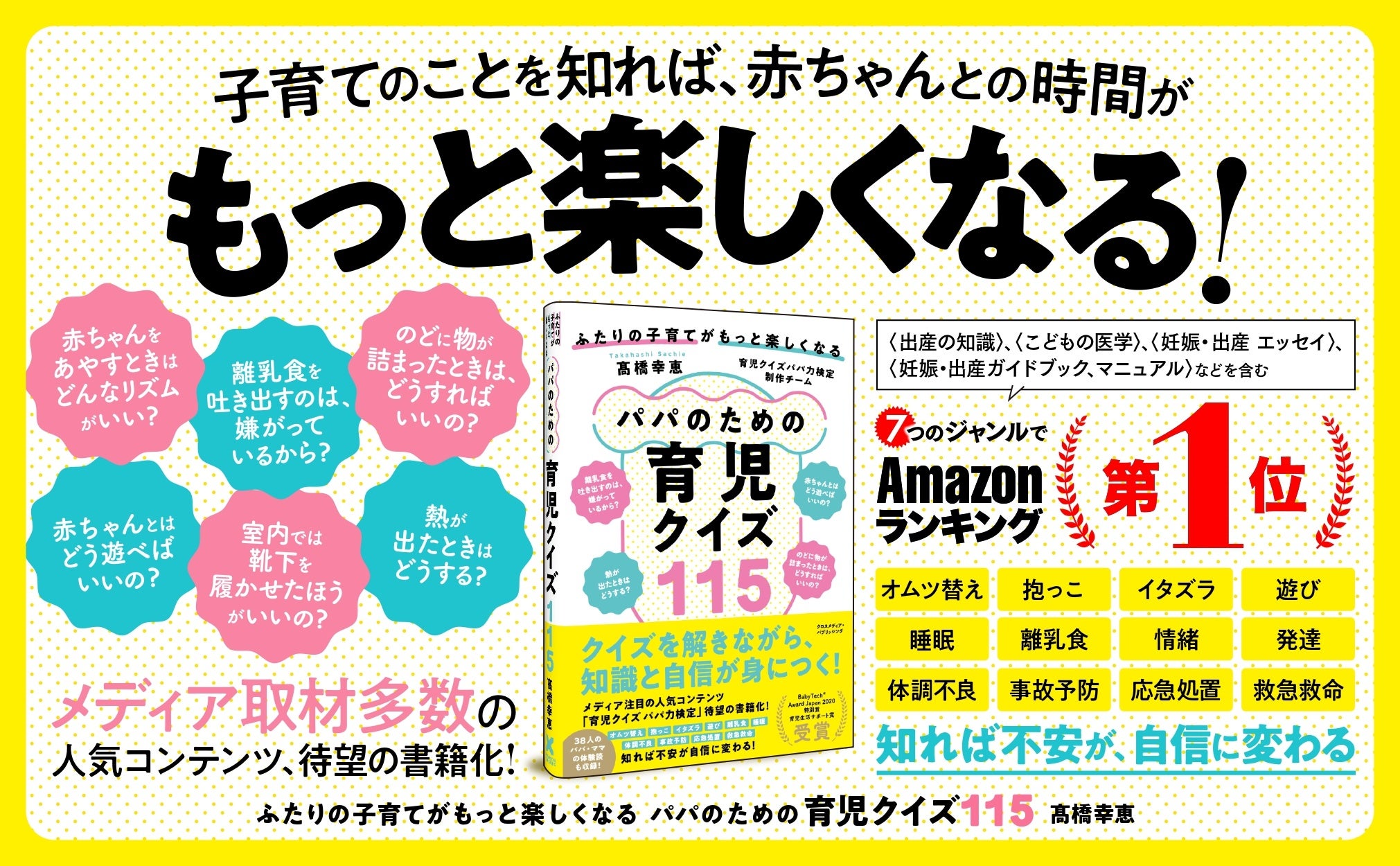 本書では、そんな「育児に不安を抱えるパパたち」のために、「育児クイズパパ力検定」のクイズと合わせて、合計115問を掲載しています。