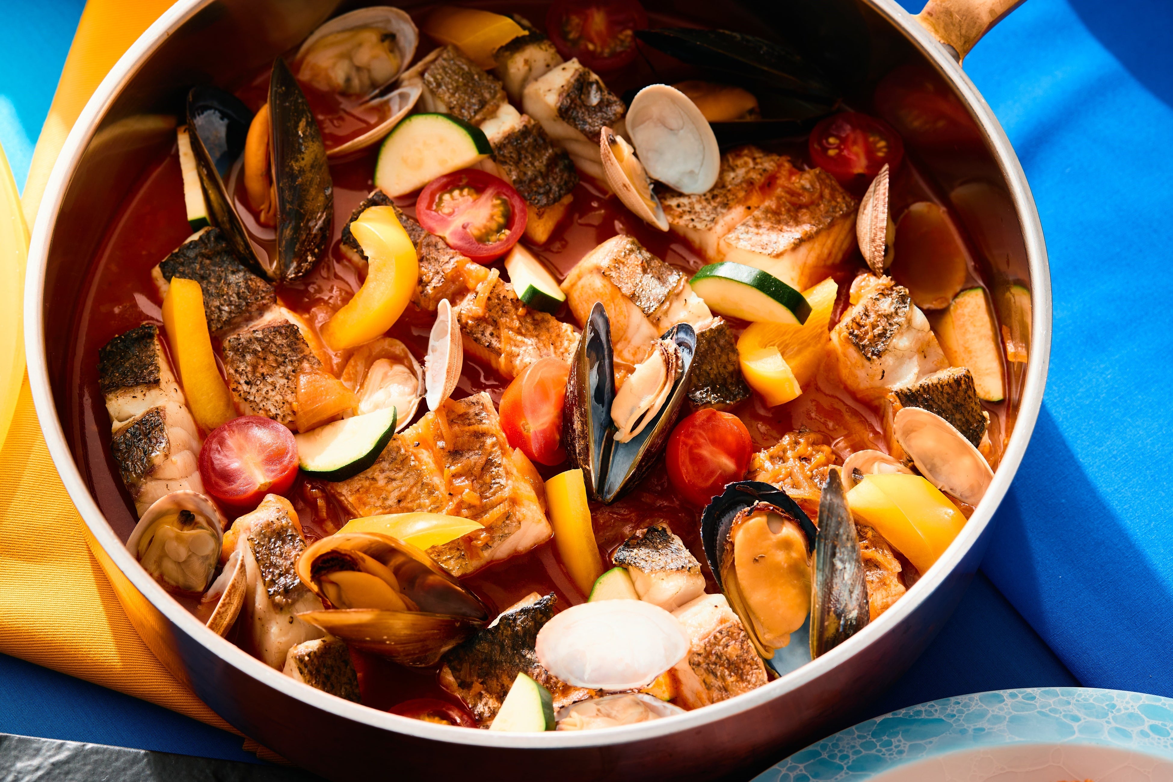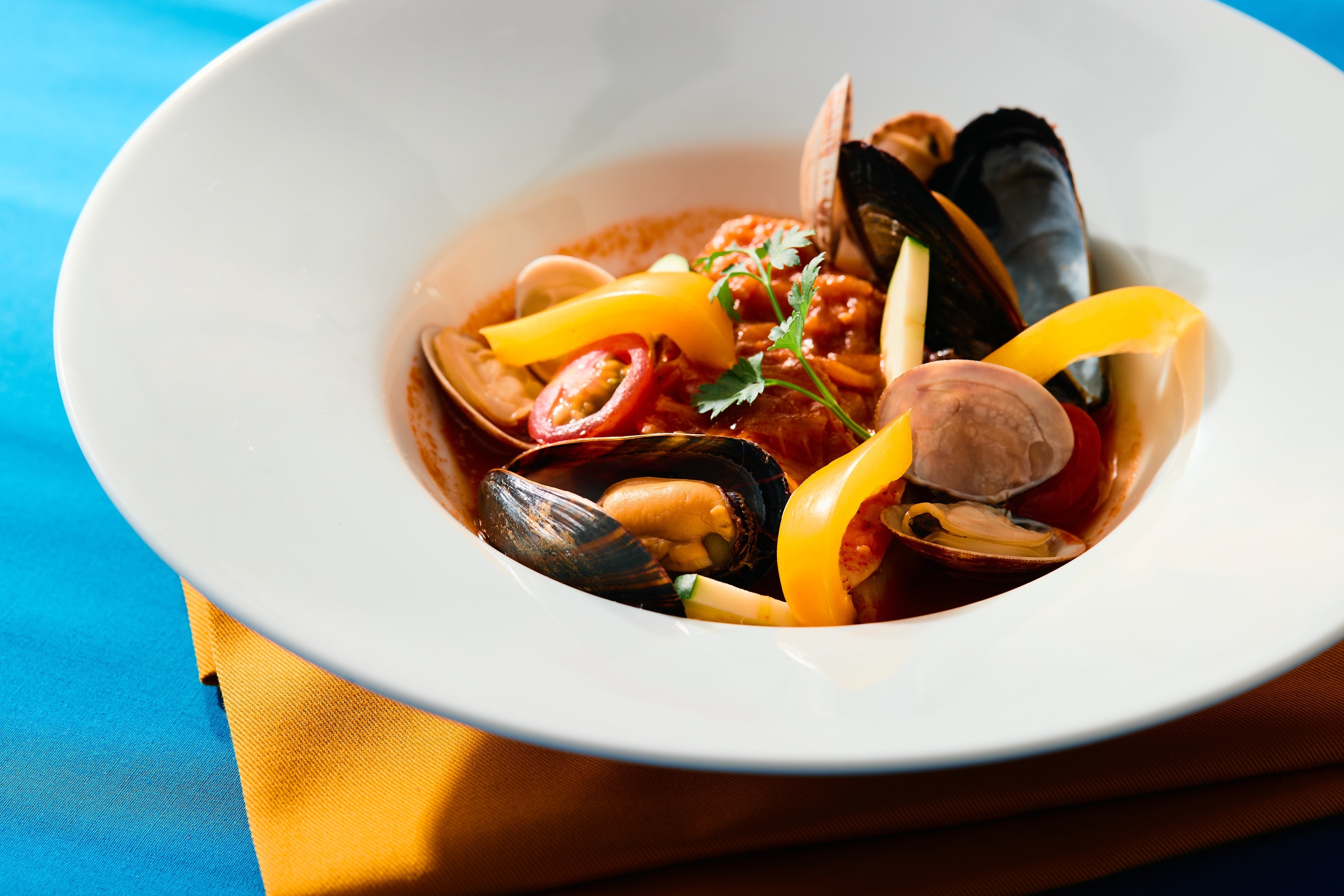 今回のビュッフェでは、イタリアの「カポナータのショートパスタ」やスペインの冷製スープ「ガスパチョ」、南フランスの煮込み料理「カスレ」など、トマトやレモン、ズッキーニや白インゲンなどの彩り鮮やかな野菜や、魚介類、オリーブオイルを使用したお料理をラインアップ。地中海の澄んだ青い海を思い浮かべながら味わってはいかがでしょうか。