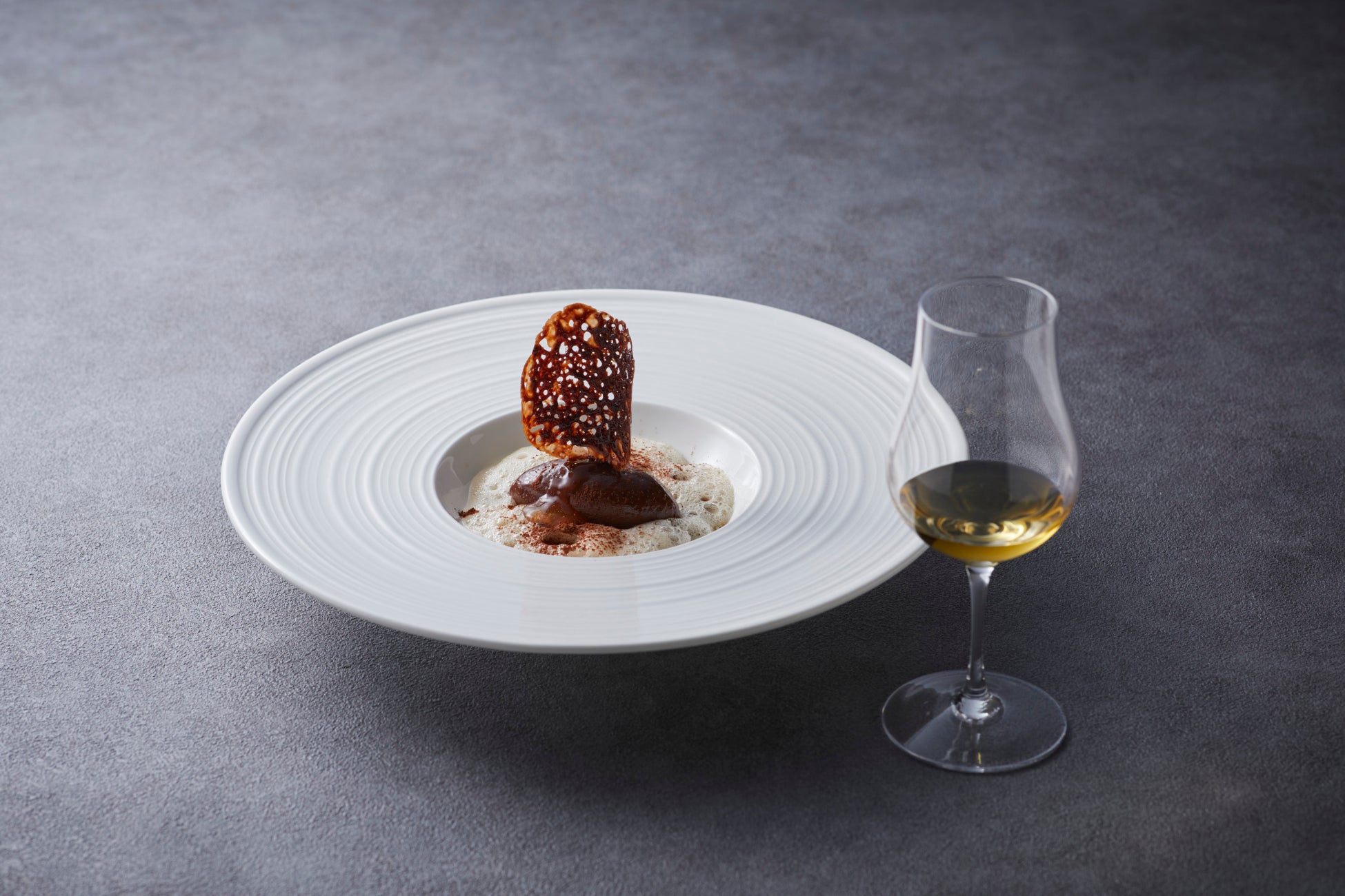 当ホテルでフランス料理に携わる料理長の戸澤昌之が前菜とメインを、シェフパティシエの茂木平太がデザートを担当します。前菜とメインに加えて、デザートにはドライイチジクのコンフィとカカオのソルベ・ダンテルをご提供します。