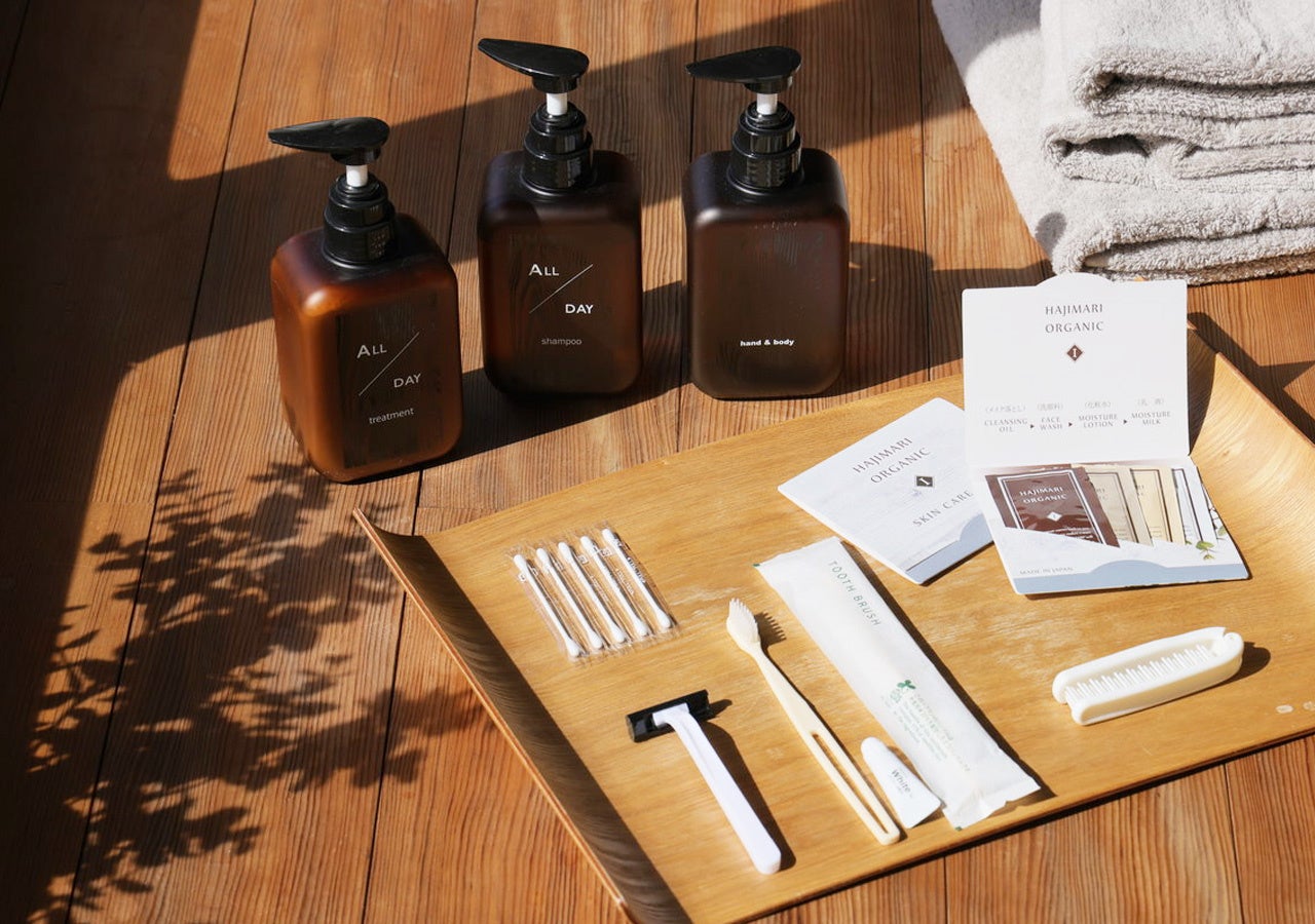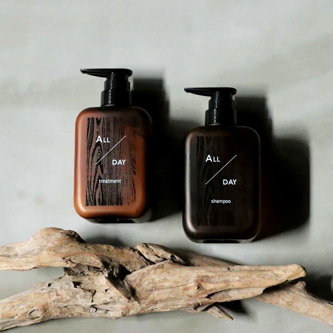 「民泊別邸」では、美容師監修のブランド「ALLDAY」シャンプーとトリートメントをご用意しています。金木犀とジャスミンの華やかな花束を香りのベースに、全体に爽やかさが広がるユニセックスな香りで、リフレッシュ効果も抜群です。一年かけて改良を重ねた特別なシャンプーを、ここでの滞在中にぜひご体感ください。