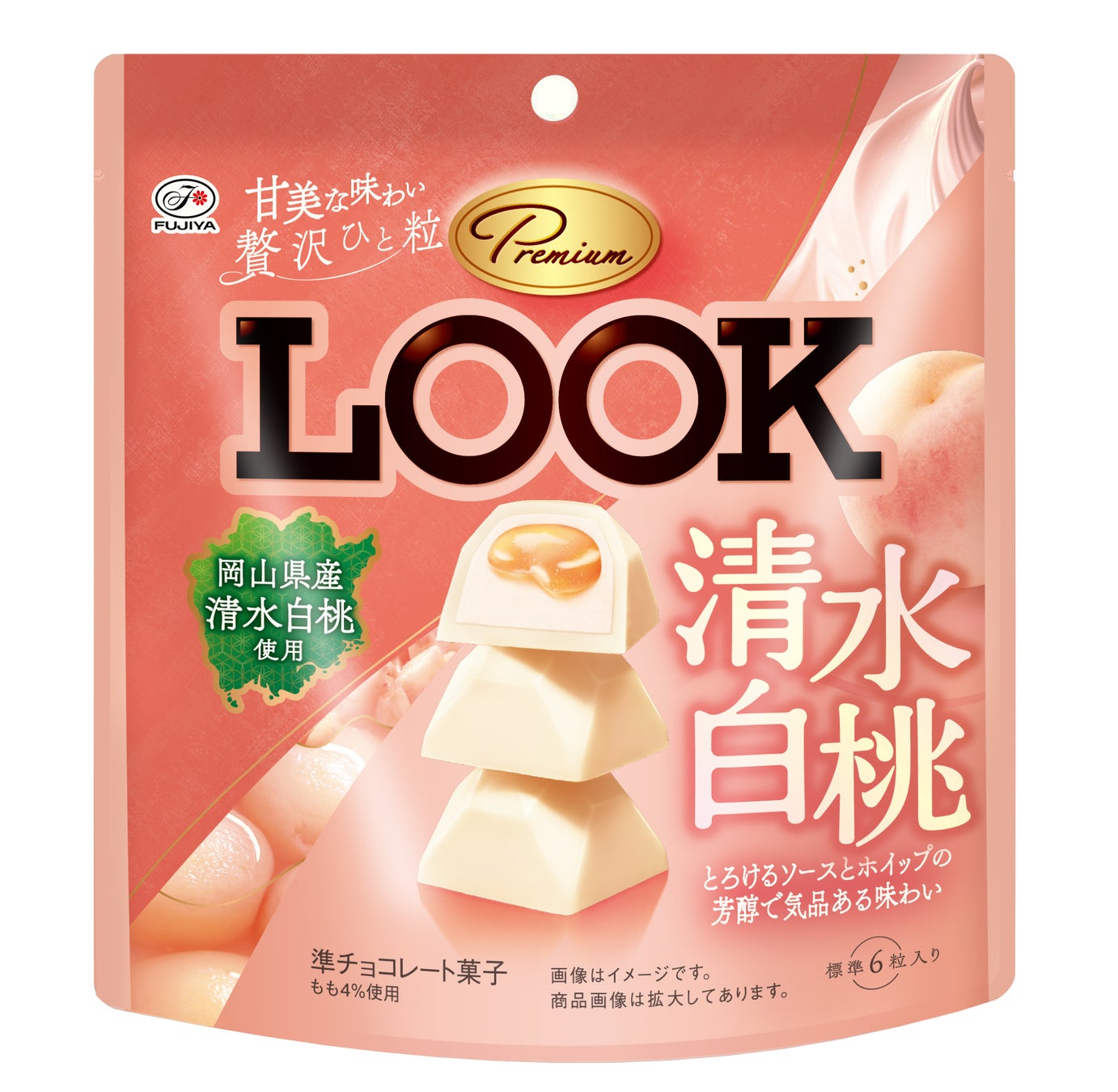 不二家のロングセラーチョコレート「ルック」より、素材にこだわったワンランク上の「プレミアムルック」の新商品が登場します。夏に旬を迎える岡山県産清水白桃を使用し、芳醇な香りと甘くとろけるような口どけを感じていただけるよう3層に仕立てました。口いっぱいに広がる清水白桃の芳醇で気品ある味わいをお愉しみください。