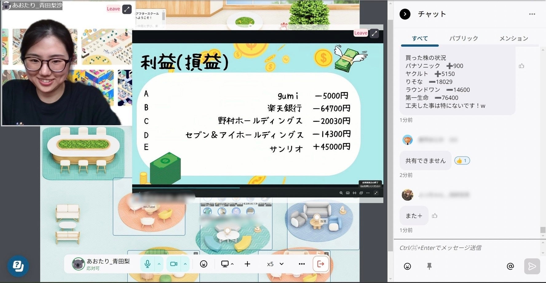 最後の講座では、3週間の損益をまとめ、今回の株式投資体験で学んだことについてプレゼンテーションを行いました。
