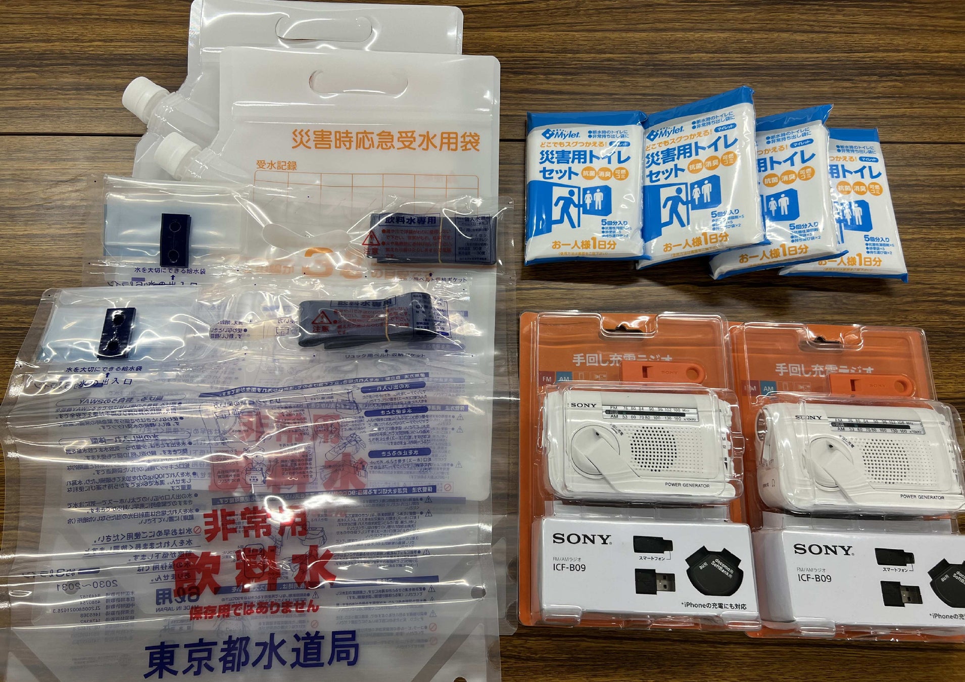 携帯トイレ、ライト、手回しラジオなど、被災した際に役立つものを展示します。