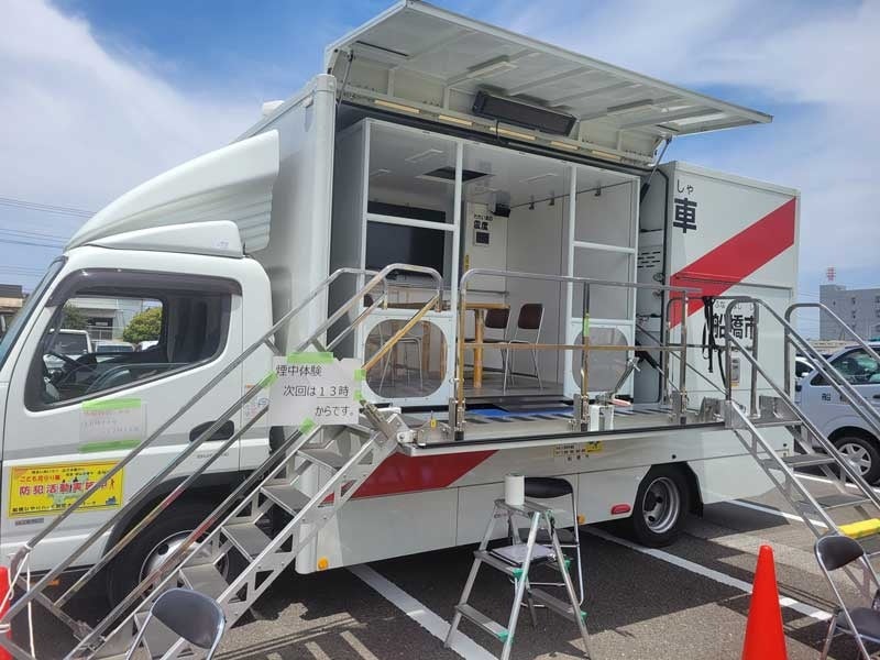 本企画では、地震体験車に乗車したり、煙の中を歩行したり、展示品にふれることで災害への知識を深めていただくものです。