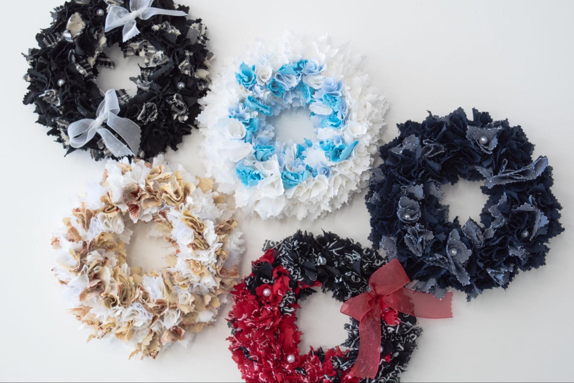 ※2~3種類の布を使用するとより個性的なリースに仕上がります。