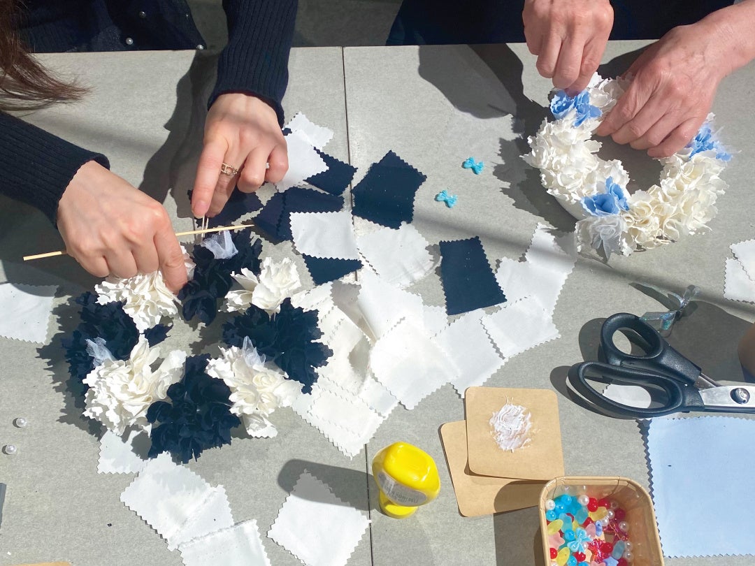 使わなくなった衣服をファブリックリースにリメイクするワークショップ